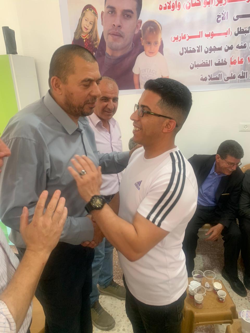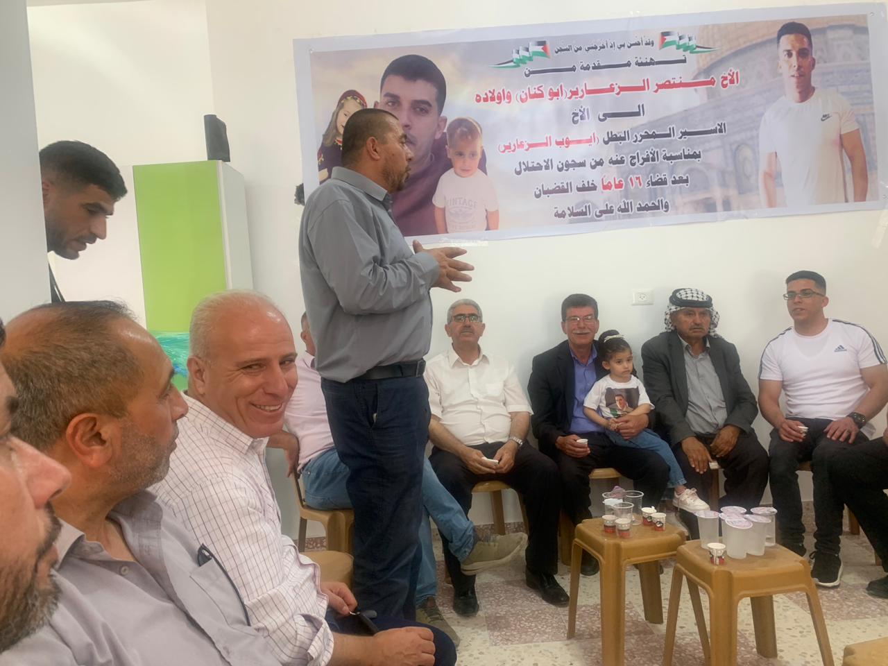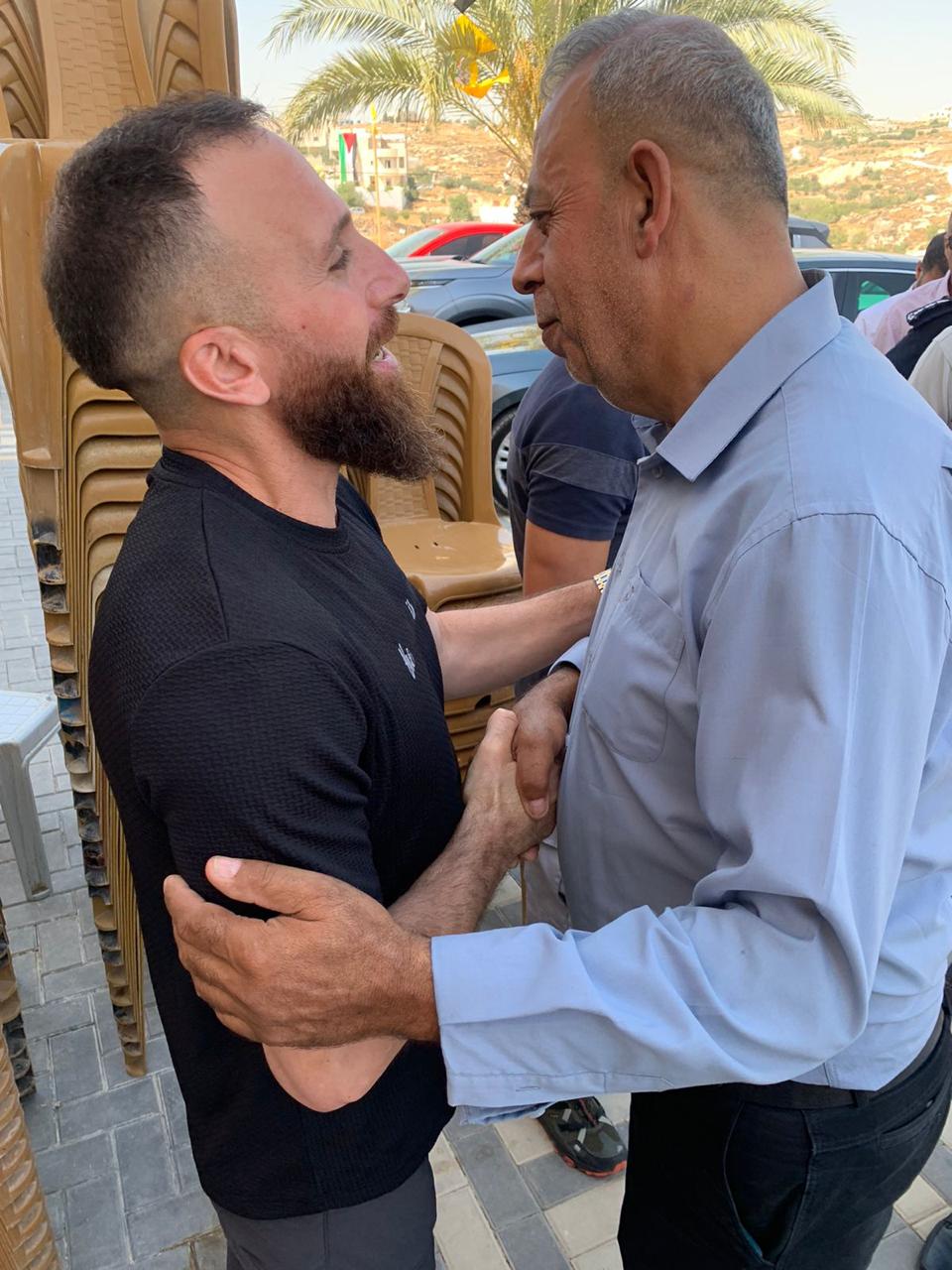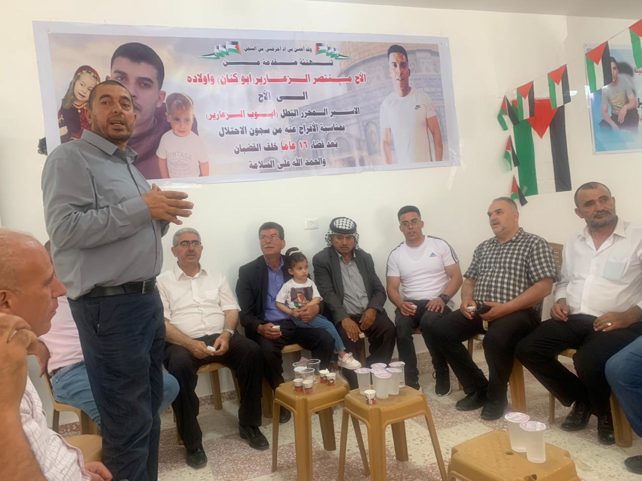 قدورة فارس رئيس نادي الأسير الفلسطيني على رأس وفد من نادي الأسير الفلسطيني وكادر من الاسرى المحررين وبمشاركة وفد من هيئة التوجيه السياسي والوطني يقدمان التهاني للأسرى المحررين ( رامي حسان وعامر أبو رموز وايوب الزعارير ) بمناسبة تحررهم من سجون الاحتلال ...