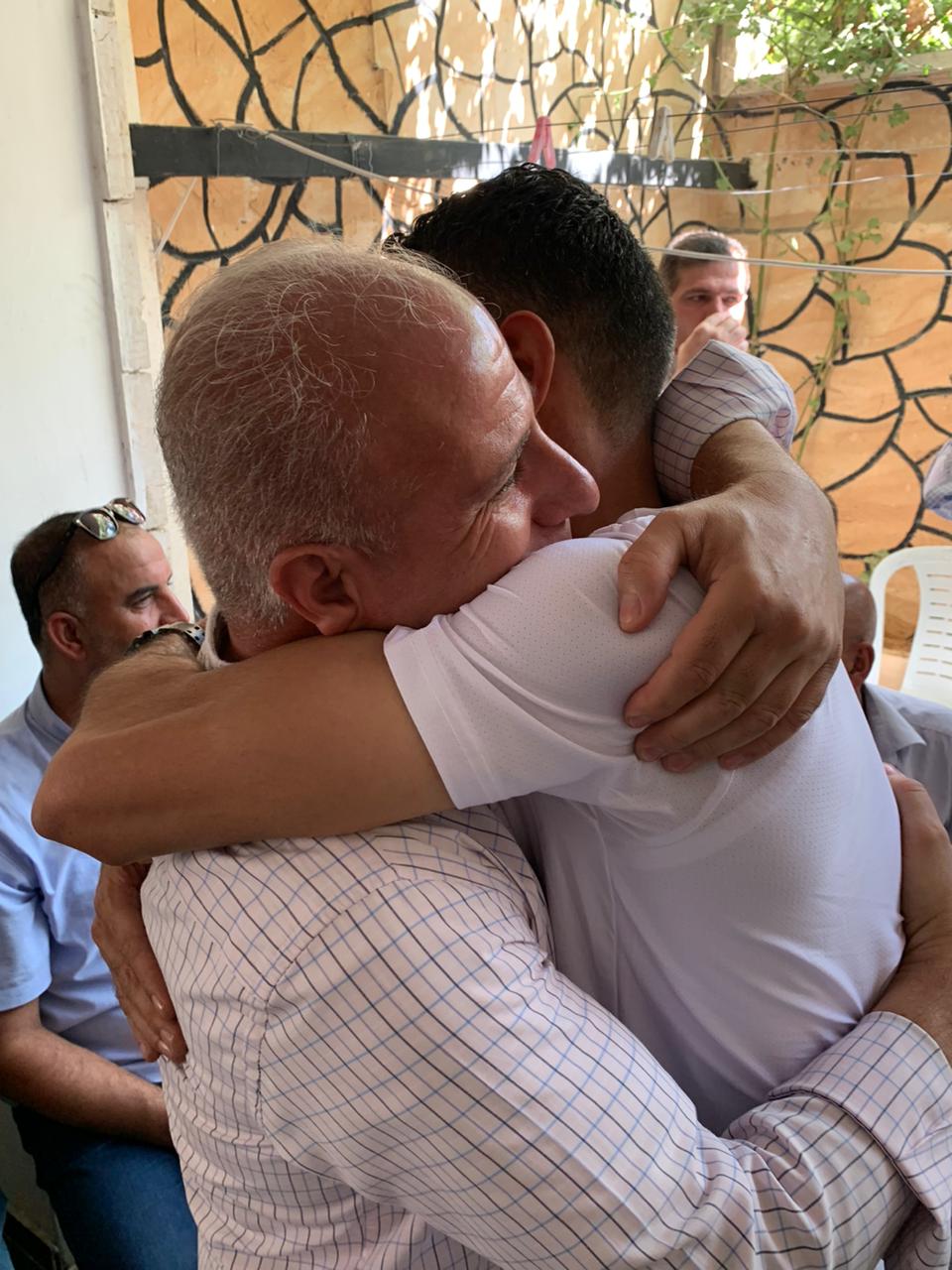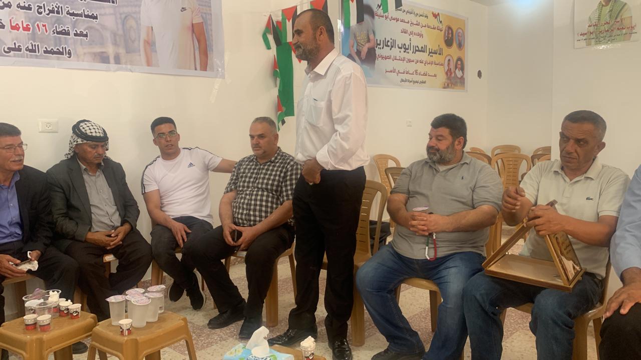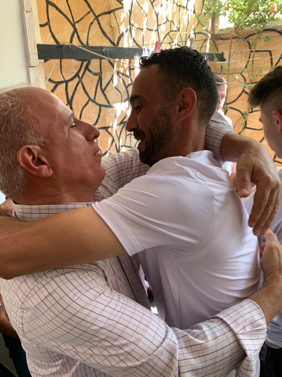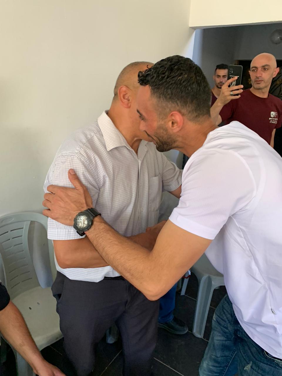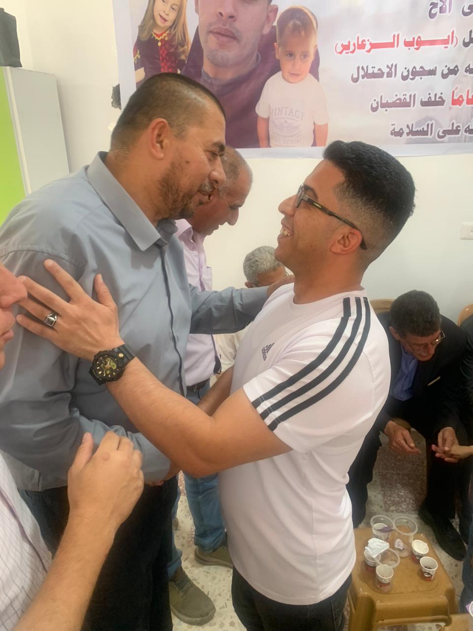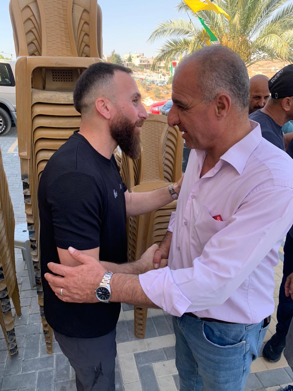 قدورة فارس رئيس نادي الأسير الفلسطيني على رأس وفد من نادي الأسير الفلسطيني وكادر من الاسرى المحررين وبمشاركة وفد من هيئة التوجيه السياسي والوطني يقدمان التهاني للأسرى المحررين ( رامي حسان وعامر أبو رموز وايوب الزعارير ) بمناسبة تحررهم من سجون الاحتلال ...