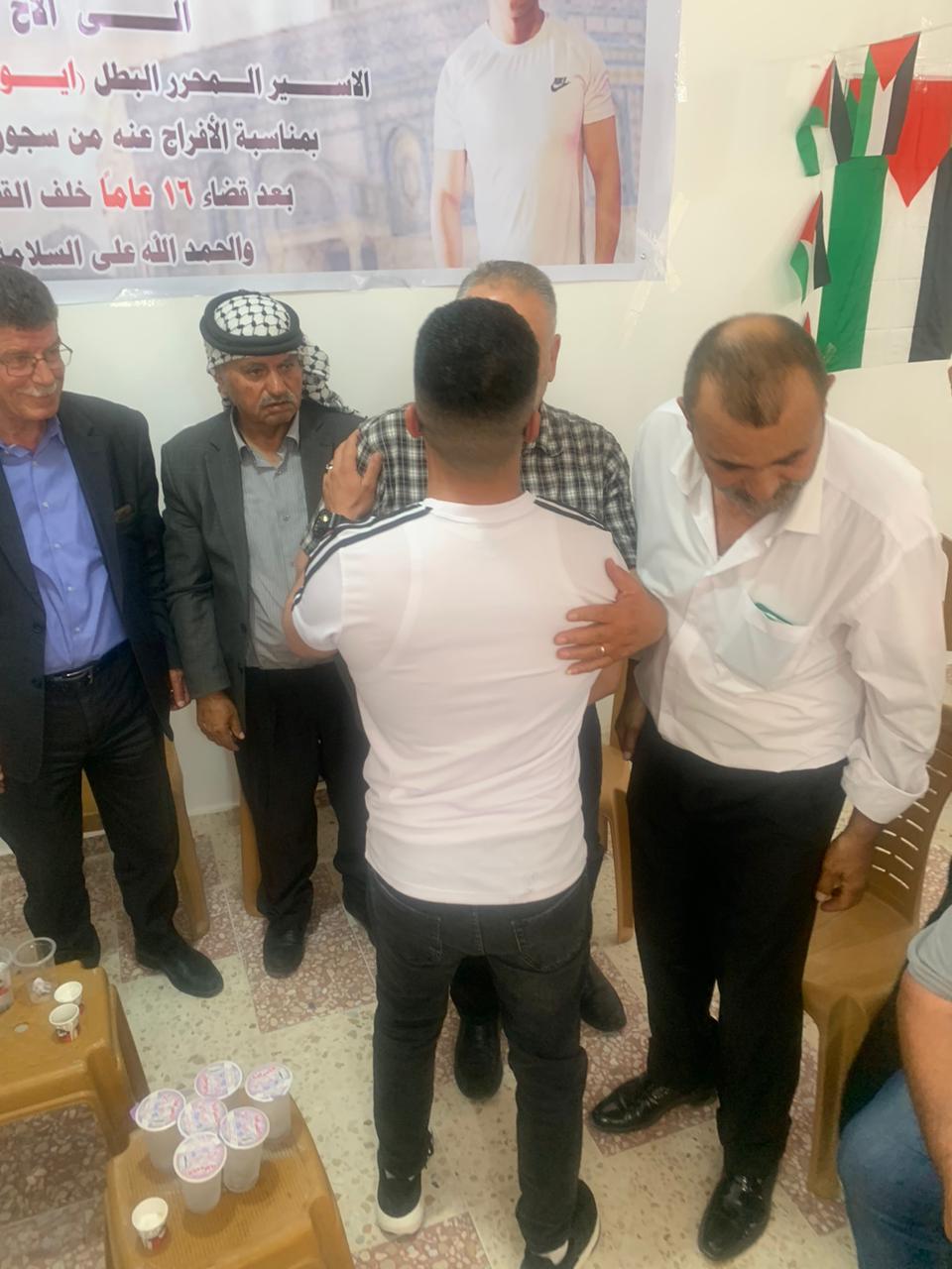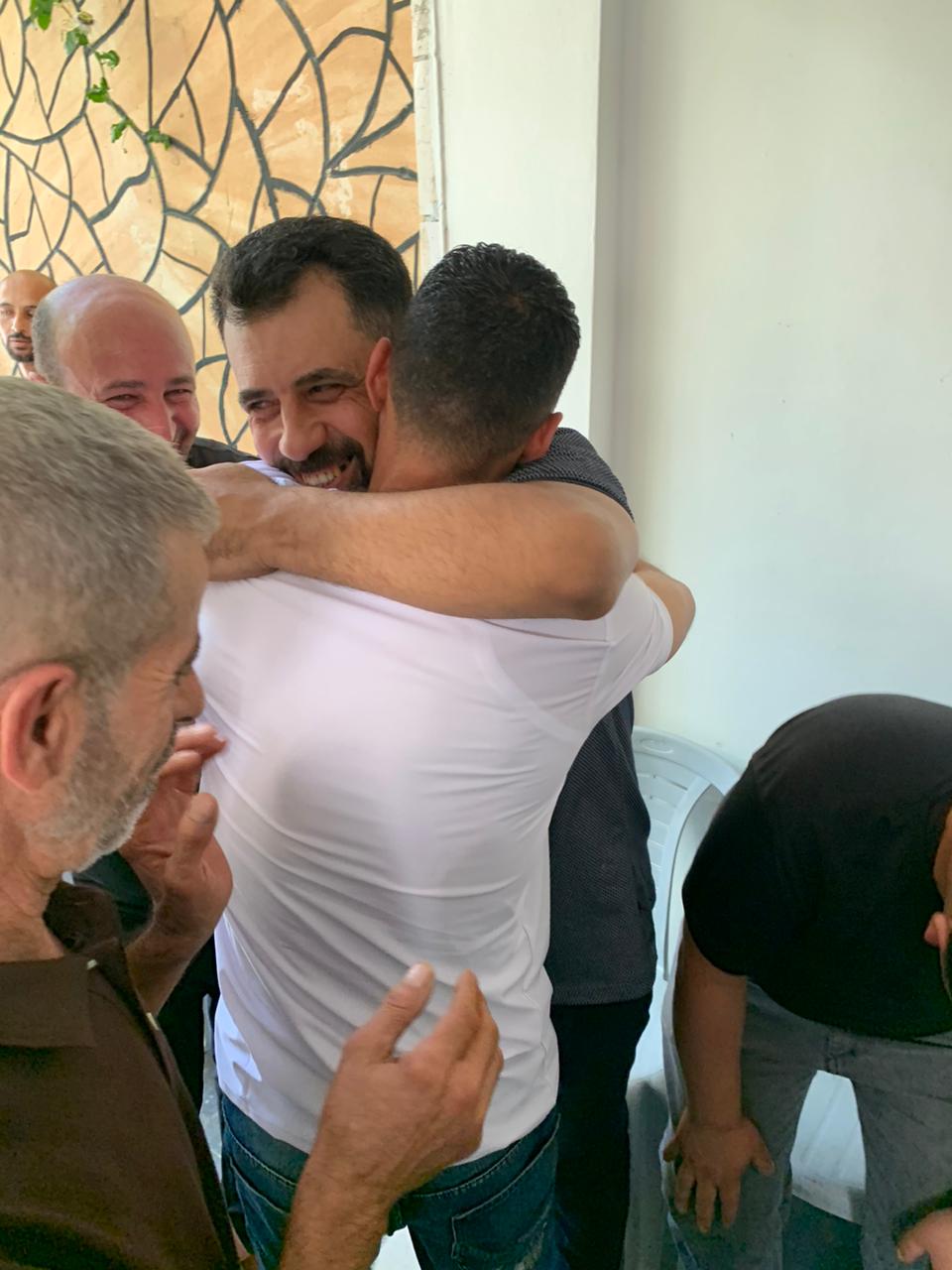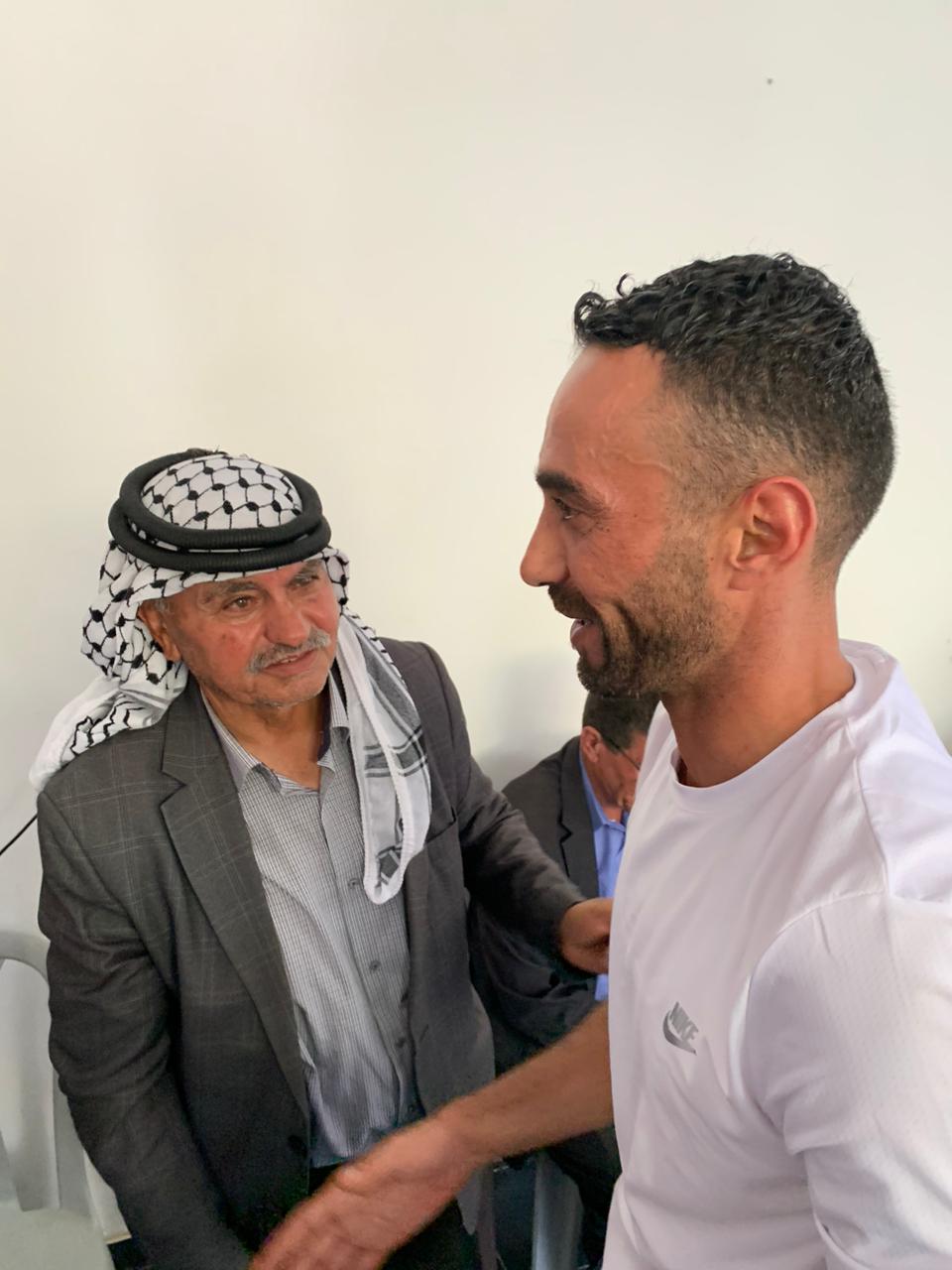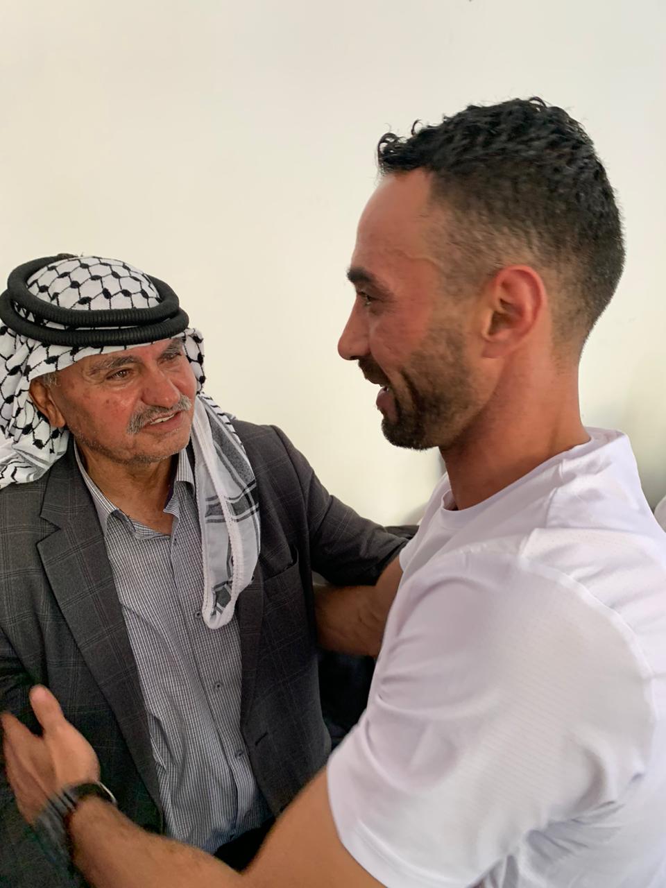قدورة فارس رئيس نادي الأسير الفلسطيني على رأس وفد من نادي الأسير الفلسطيني وكادر من الاسرى المحررين وبمشاركة وفد من هيئة التوجيه السياسي والوطني يقدمان التهاني للأسرى المحررين ( رامي حسان وعامر أبو رموز وايوب الزعارير ) بمناسبة تحررهم من سجون الاحتلال ...