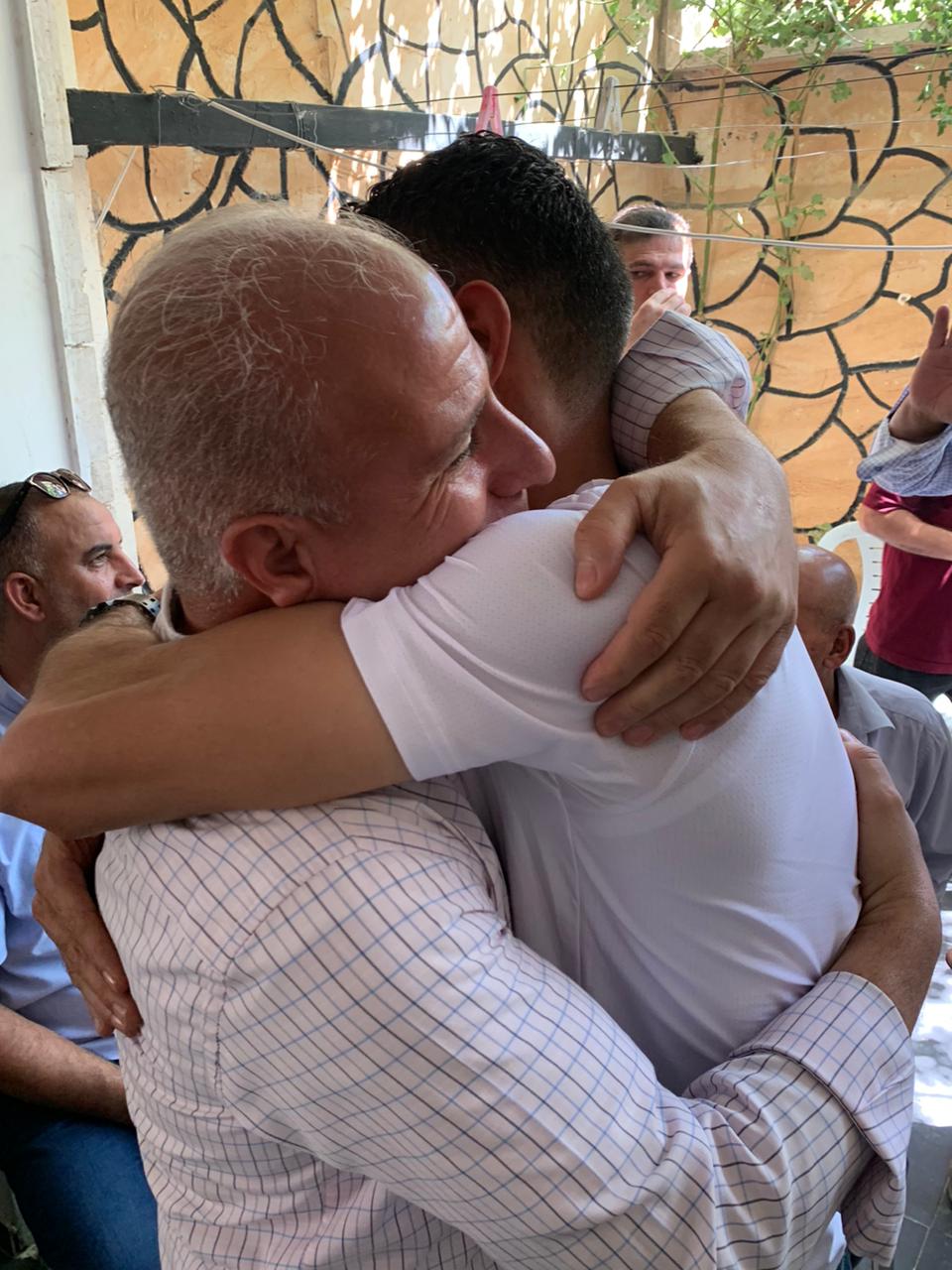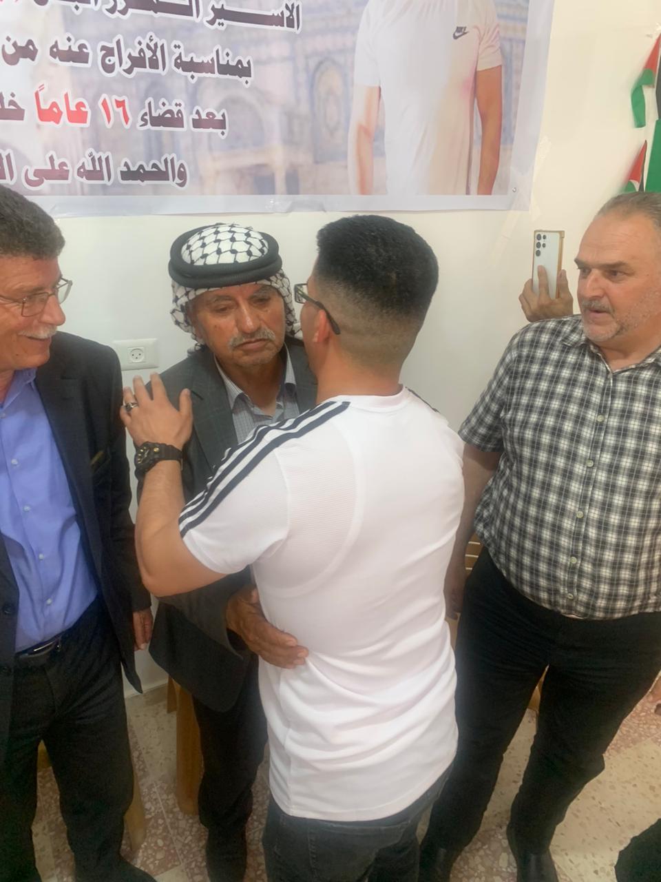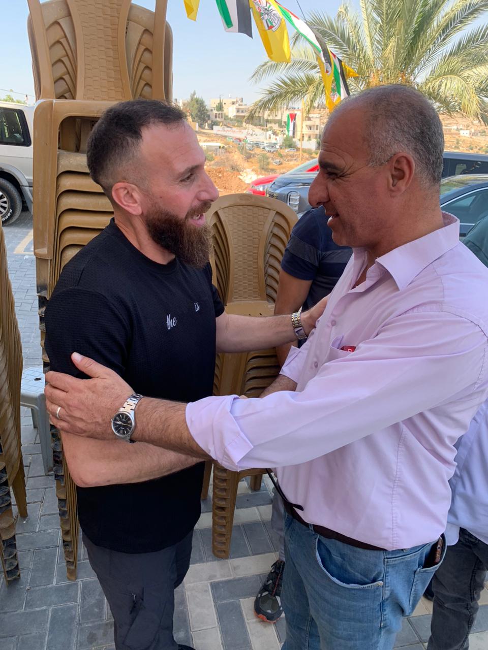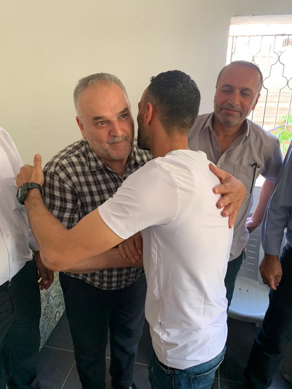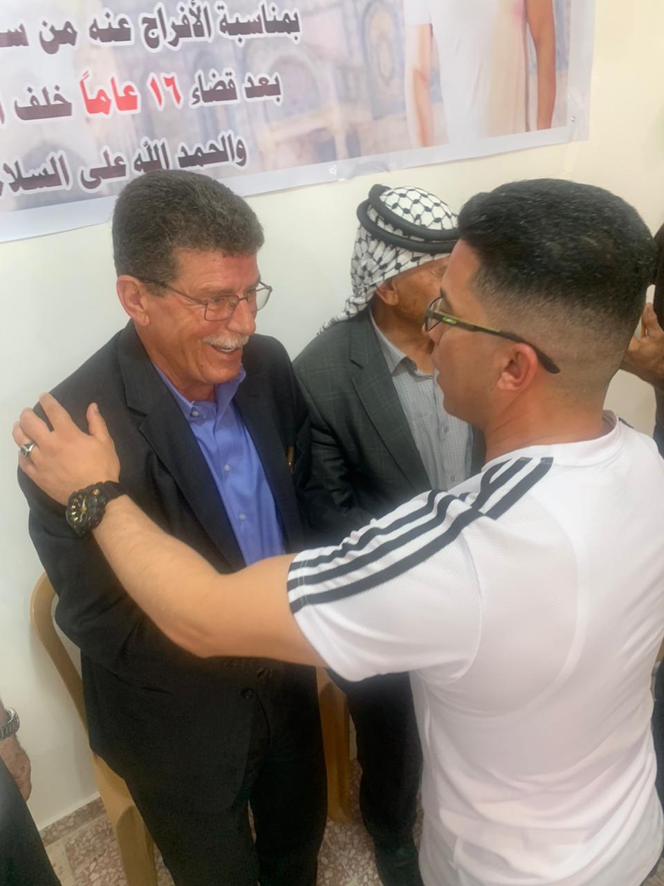 قدورة فارس رئيس نادي الأسير الفلسطيني على رأس وفد من نادي الأسير الفلسطيني وكادر من الاسرى المحررين وبمشاركة وفد من هيئة التوجيه السياسي والوطني يقدمان التهاني للأسرى المحررين ( رامي حسان وعامر أبو رموز وايوب الزعارير ) بمناسبة تحررهم من سجون الاحتلال ...