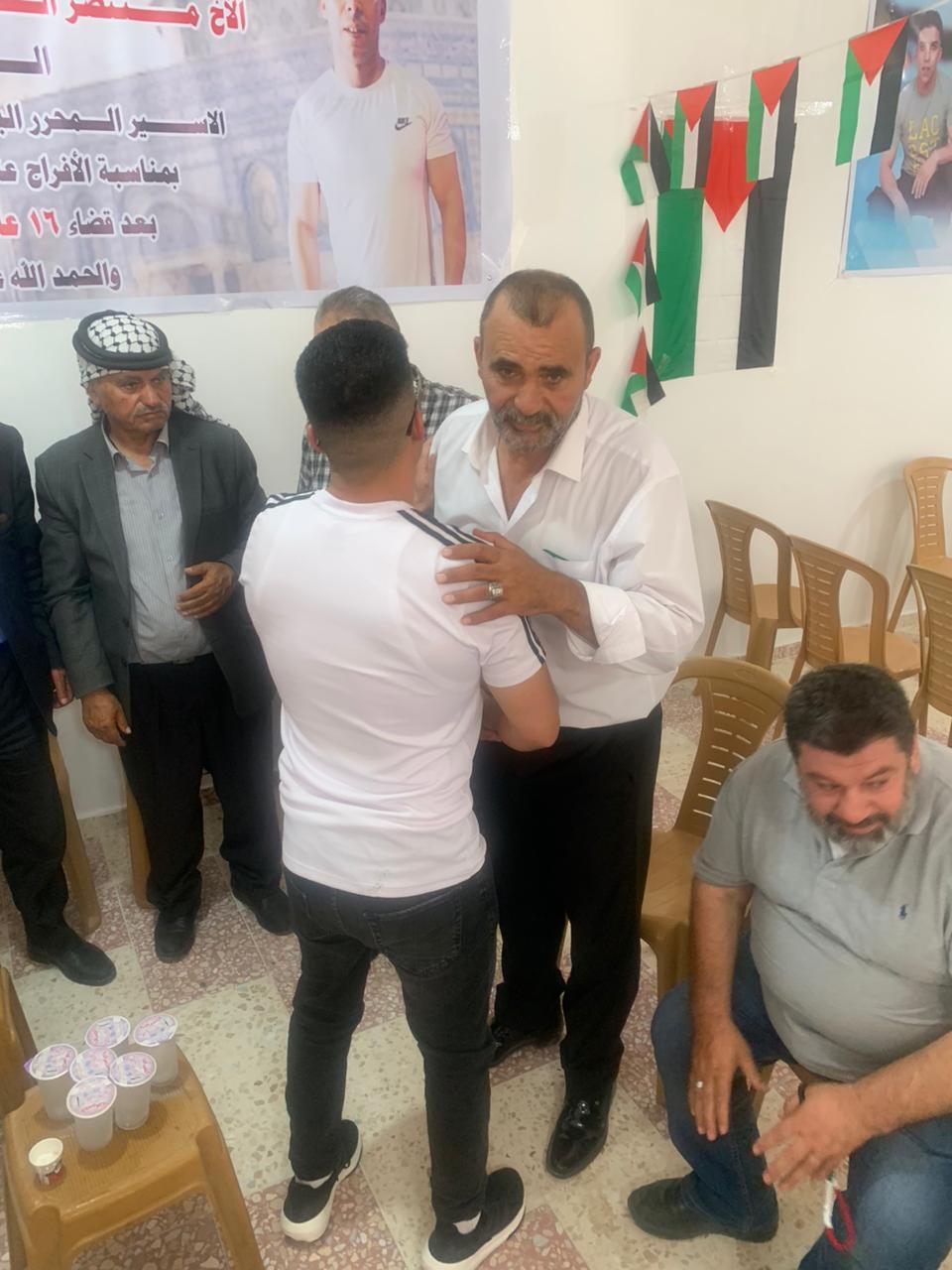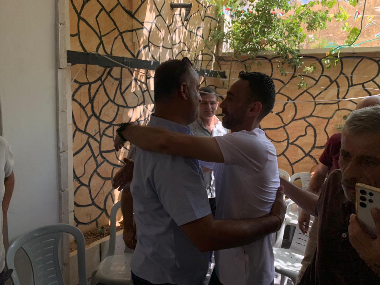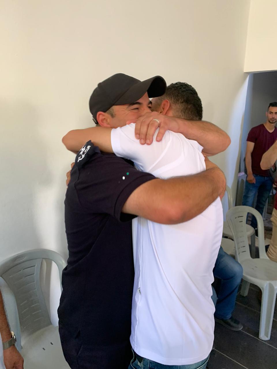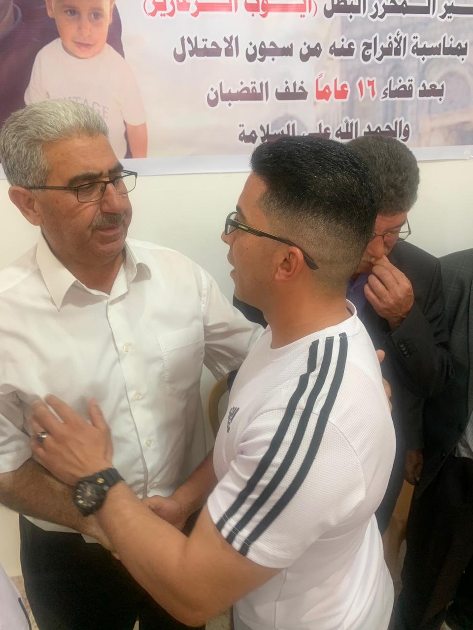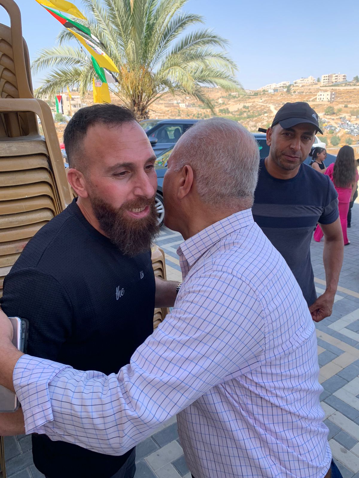 قدورة فارس رئيس نادي الأسير الفلسطيني على رأس وفد من نادي الأسير الفلسطيني وكادر من الاسرى المحررين وبمشاركة وفد من هيئة التوجيه السياسي والوطني يقدمان التهاني للأسرى المحررين ( رامي حسان وعامر أبو رموز وايوب الزعارير ) بمناسبة تحررهم من سجون الاحتلال ...