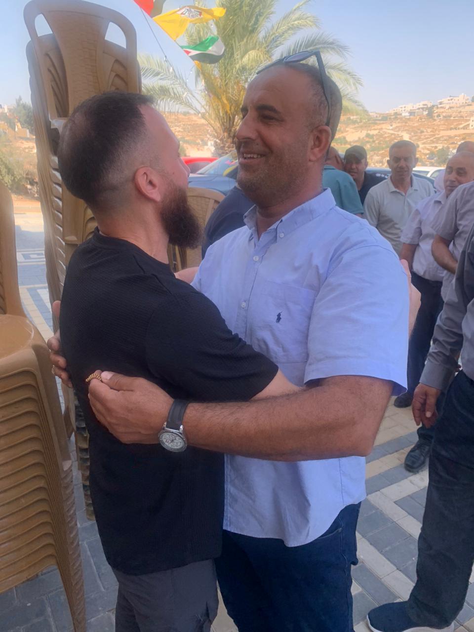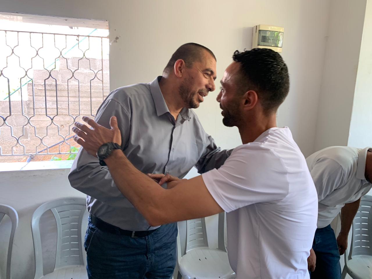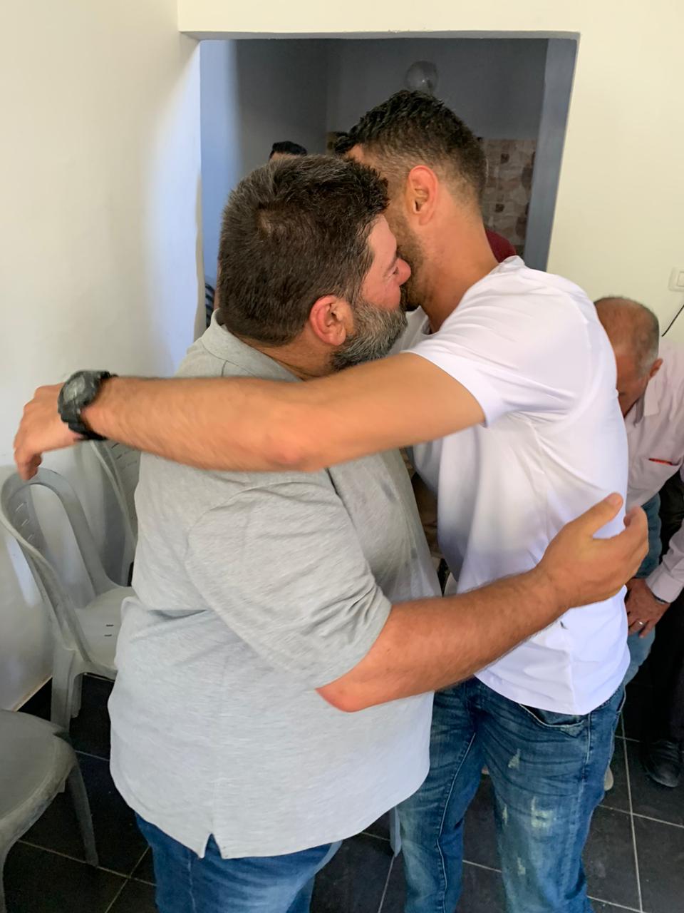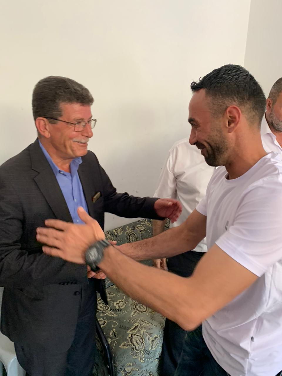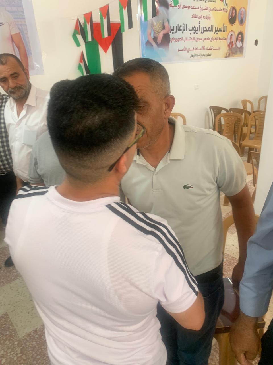 قدورة فارس رئيس نادي الأسير الفلسطيني على رأس وفد من نادي الأسير الفلسطيني وكادر من الاسرى المحررين وبمشاركة وفد من هيئة التوجيه السياسي والوطني يقدمان التهاني للأسرى المحررين ( رامي حسان وعامر أبو رموز وايوب الزعارير ) بمناسبة تحررهم من سجون الاحتلال ...