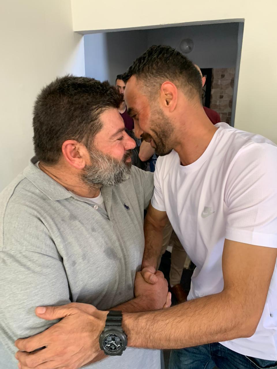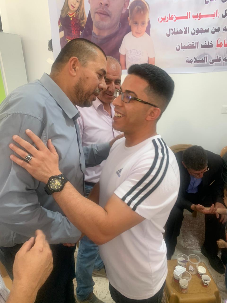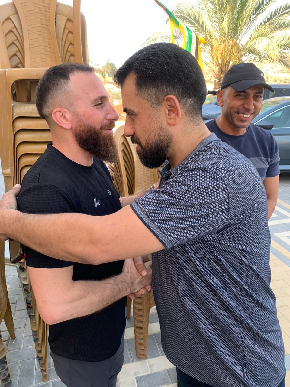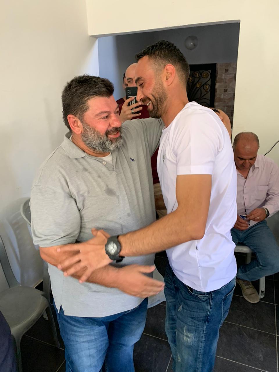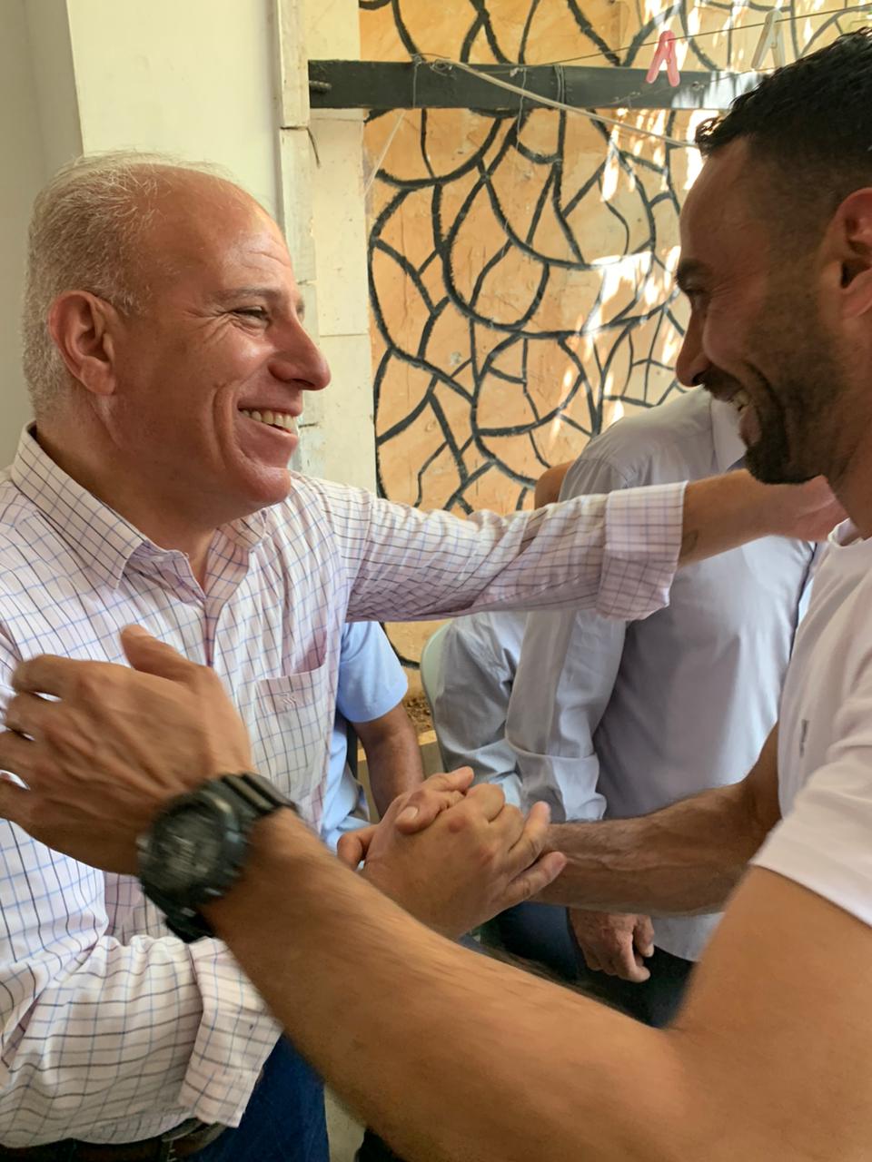 قدورة فارس رئيس نادي الأسير الفلسطيني على رأس وفد من نادي الأسير الفلسطيني وكادر من الاسرى المحررين وبمشاركة وفد من هيئة التوجيه السياسي والوطني يقدمان التهاني للأسرى المحررين ( رامي حسان وعامر أبو رموز وايوب الزعارير ) بمناسبة تحررهم من سجون الاحتلال ...
