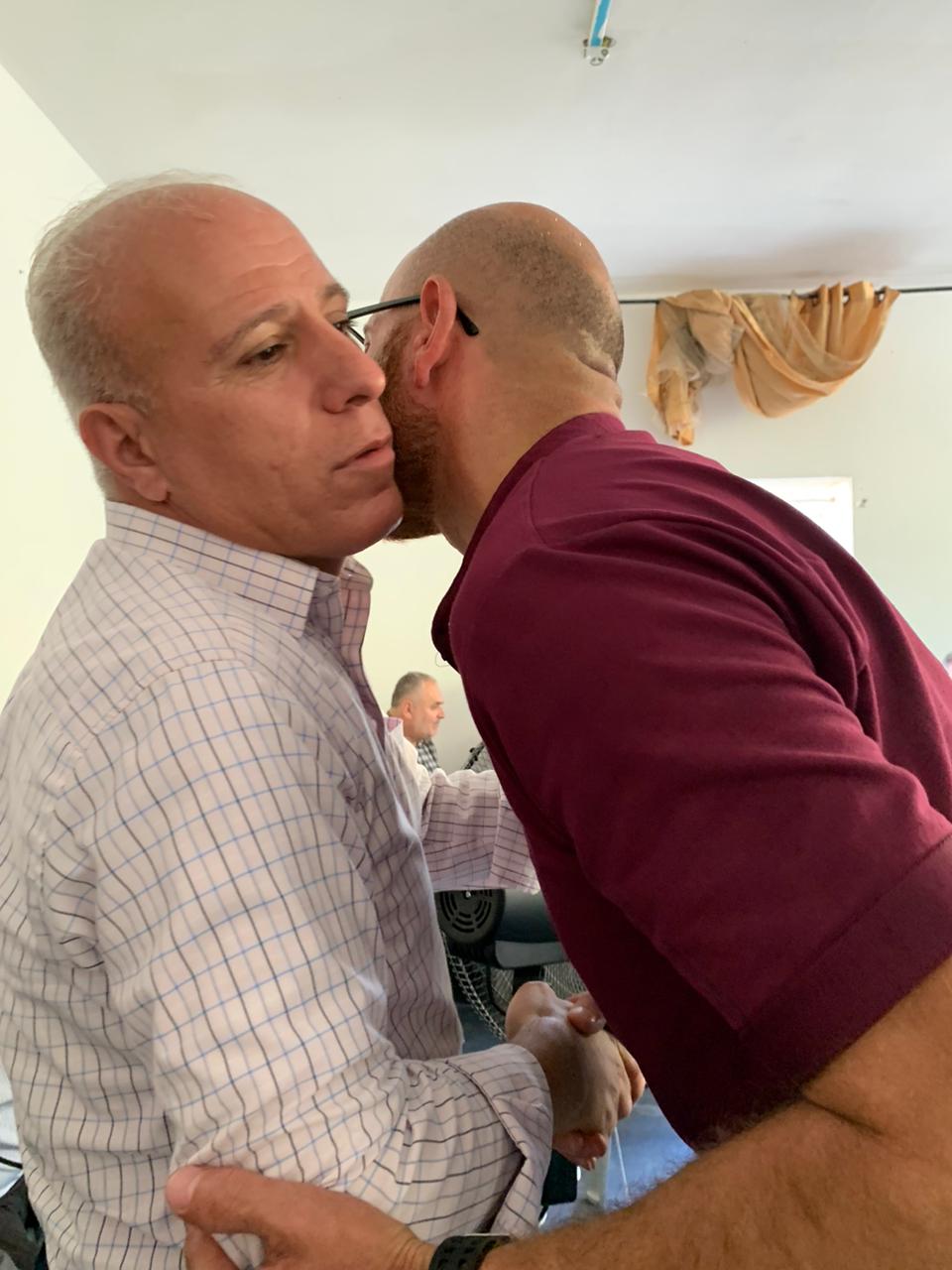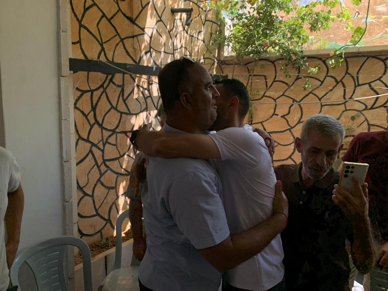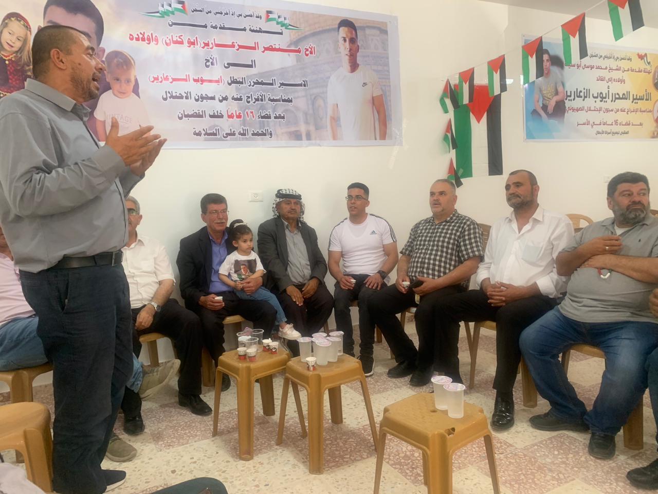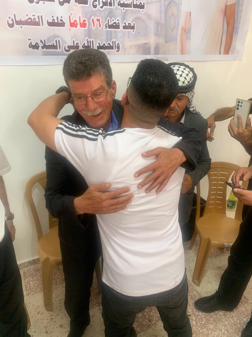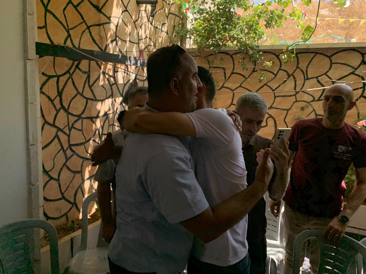 قدورة فارس رئيس نادي الأسير الفلسطيني على رأس وفد من نادي الأسير الفلسطيني وكادر من الاسرى المحررين وبمشاركة وفد من هيئة التوجيه السياسي والوطني يقدمان التهاني للأسرى المحررين ( رامي حسان وعامر أبو رموز وايوب الزعارير ) بمناسبة تحررهم من سجون الاحتلال ...