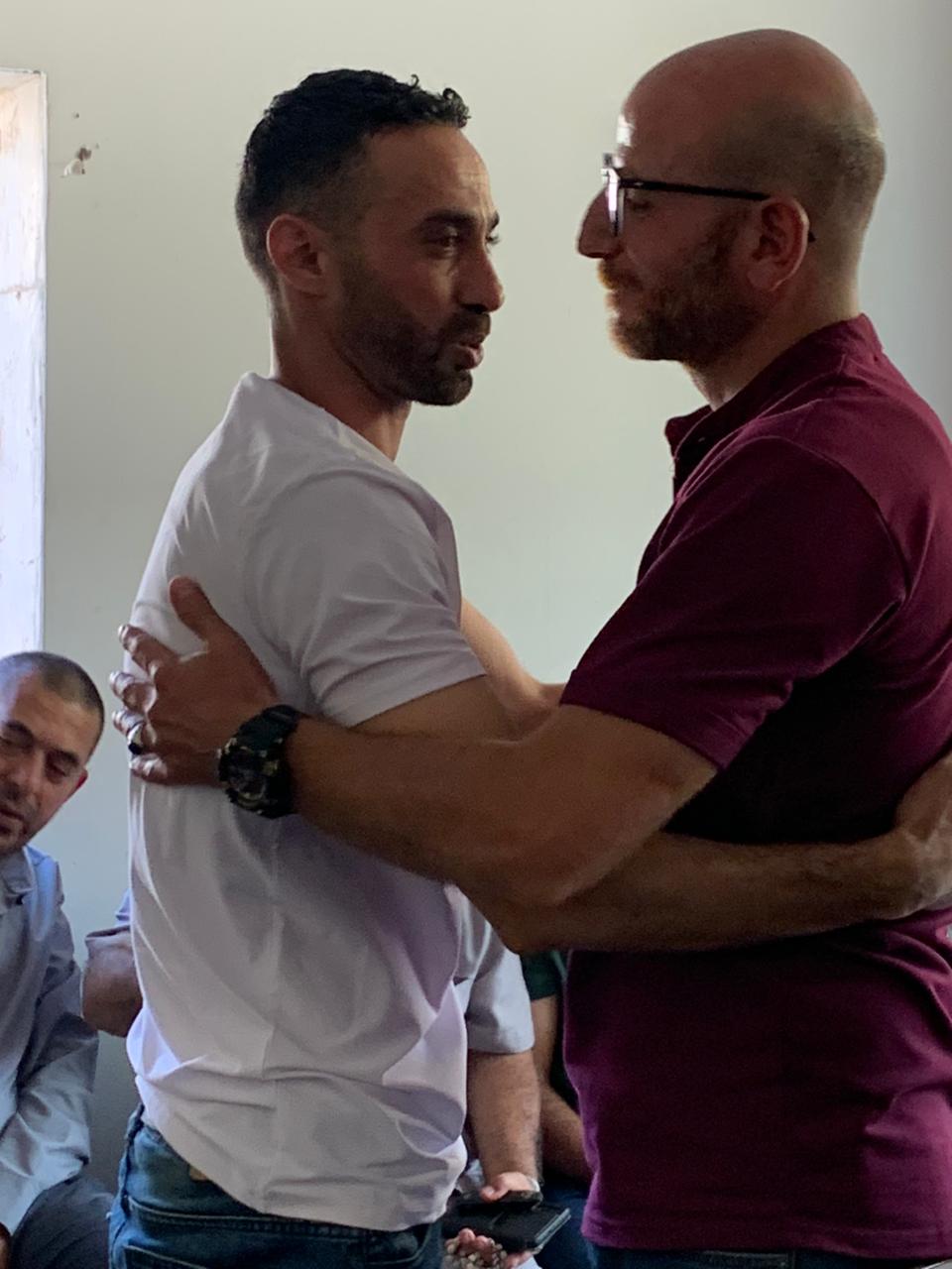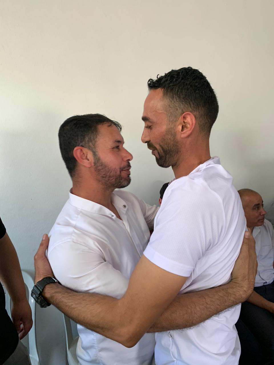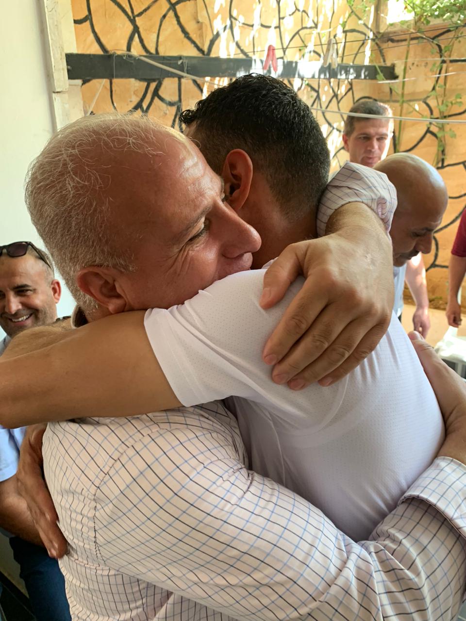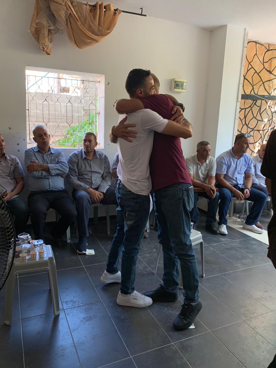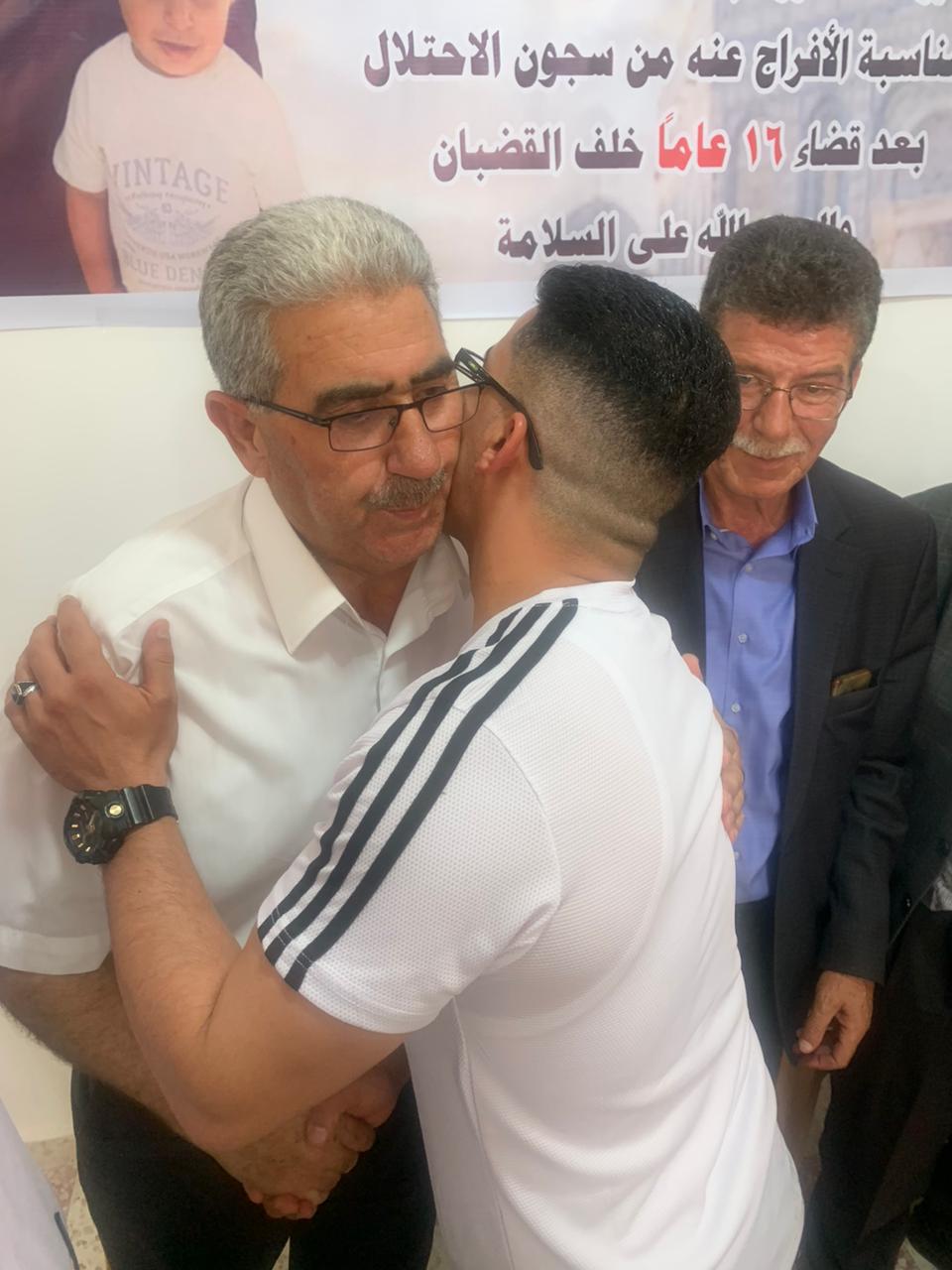 قدورة فارس رئيس نادي الأسير الفلسطيني على رأس وفد من نادي الأسير الفلسطيني وكادر من الاسرى المحررين وبمشاركة وفد من هيئة التوجيه السياسي والوطني يقدمان التهاني للأسرى المحررين ( رامي حسان وعامر أبو رموز وايوب الزعارير ) بمناسبة تحررهم من سجون الاحتلال ...