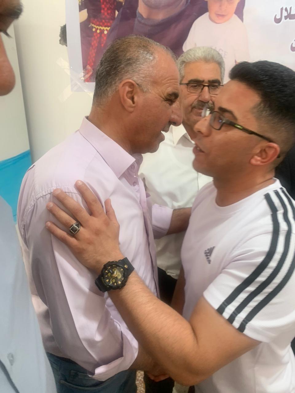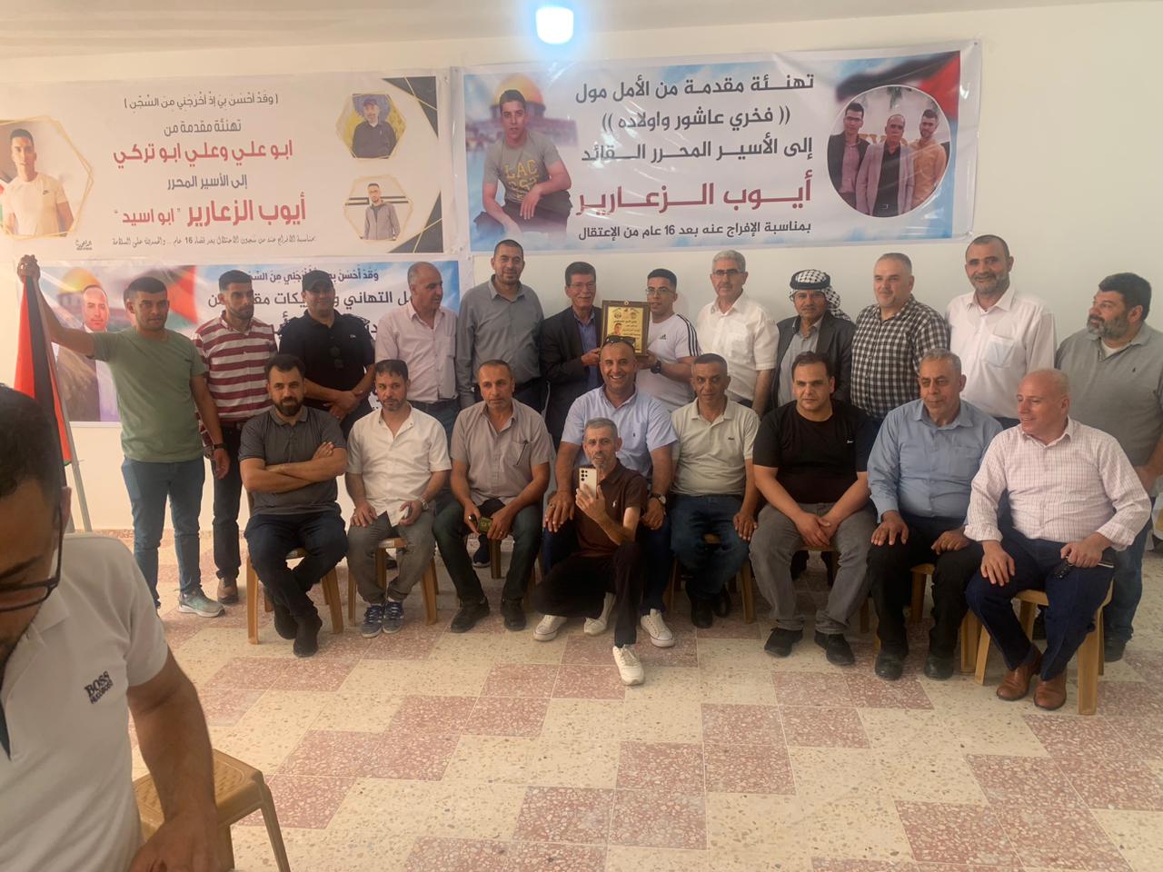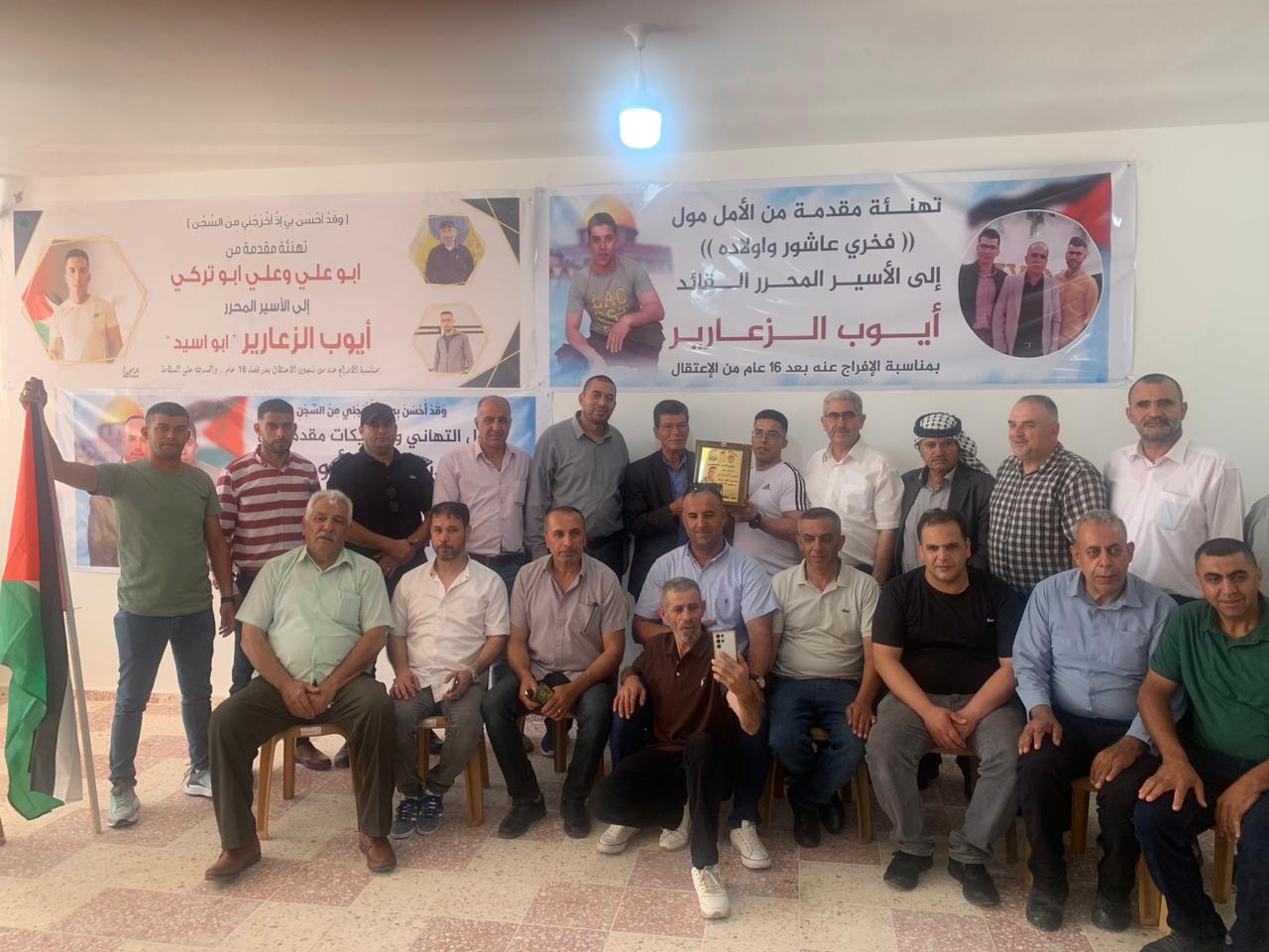 وشارك في تقديم التهاني عبد الله الزغاري مدير عام نادي الأسير وامجد النجار مدير عام العلاقات العامة والاعلام وحسام أبو علان مدير مكتب نادي الأسير وجهاد الشحاتيت رئيس دائرة الاسرى المحررين وكوكبه من الاسرى المحررين وهم ( جواد حوشية ، عمار البدوي ، بهاء القاضي ، عواد السعدة ، عبد الوهاب الأطرش ، إبراهيم عطية ، حمادة القواسمة ، محمد مخامرة ، نجيب الشوامرة ، فراس مريش..