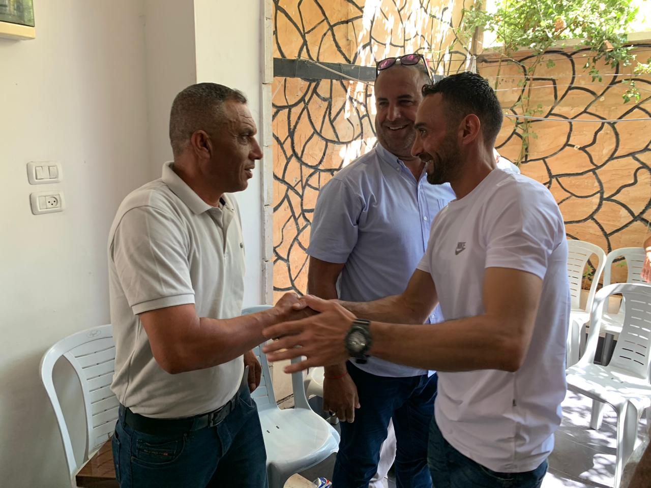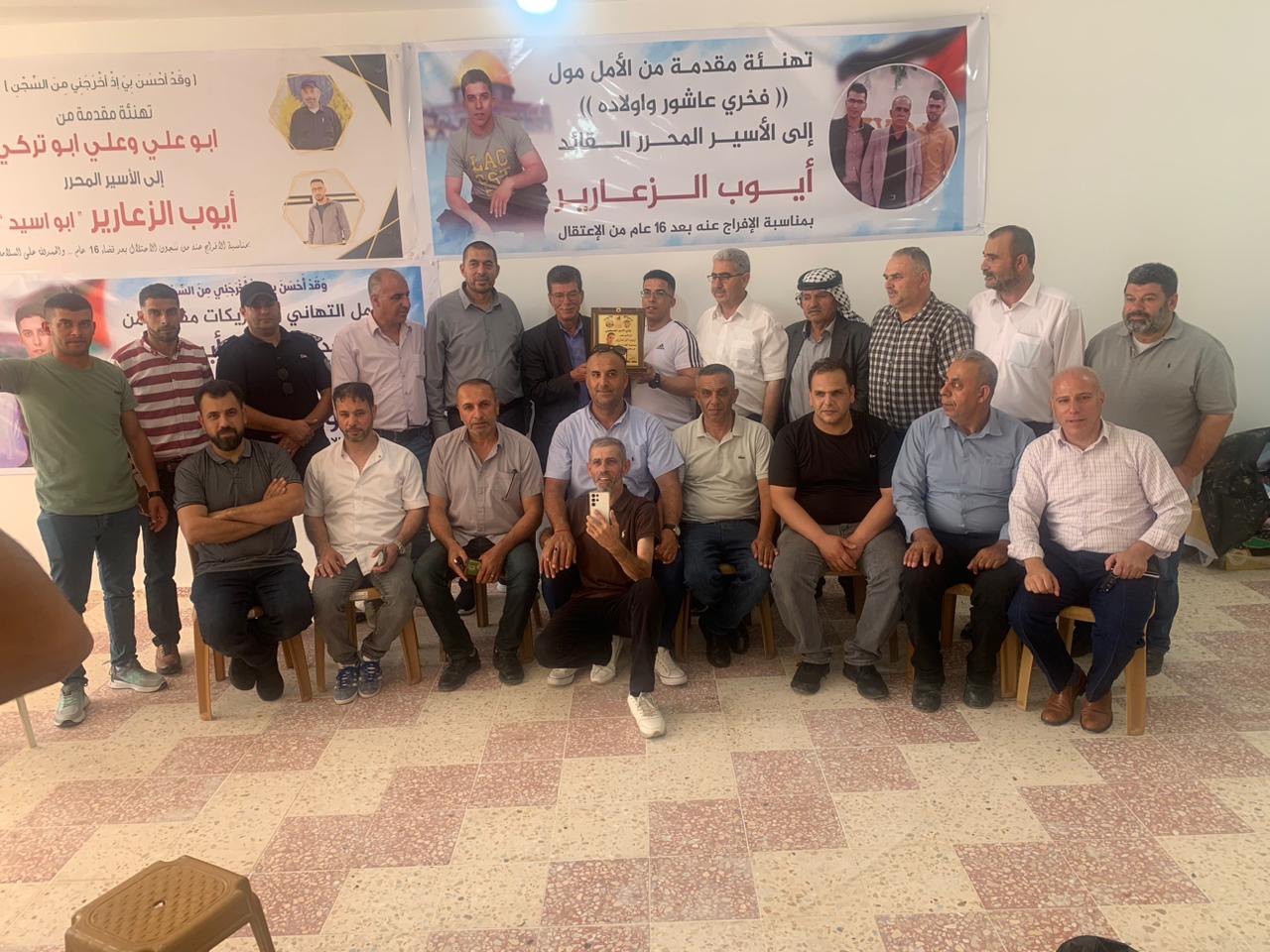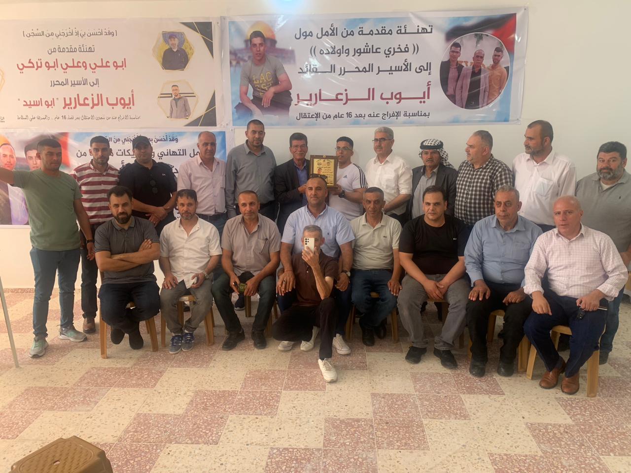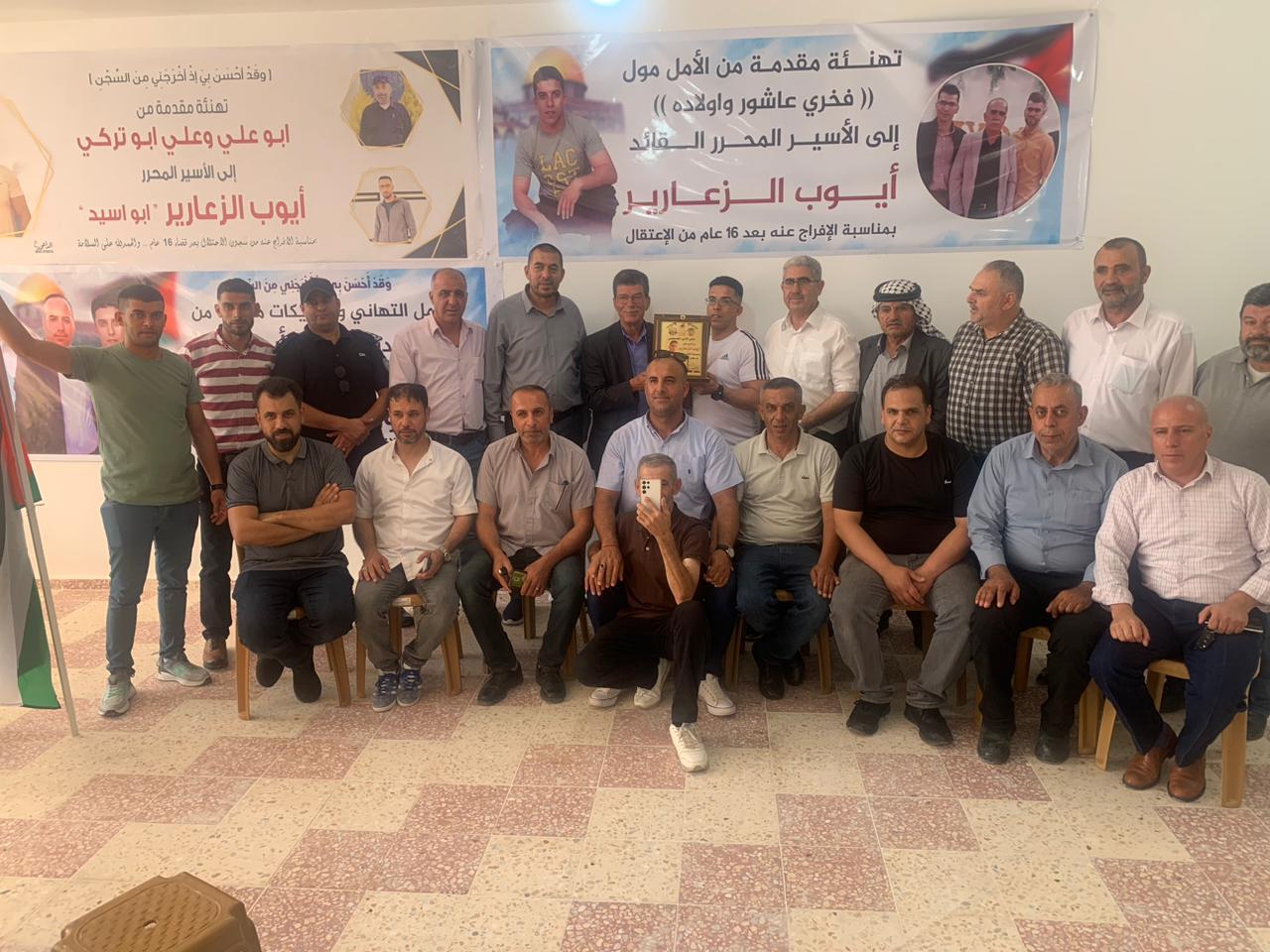 وشارك في تقديم التهاني عبد الله الزغاري مدير عام نادي الأسير وامجد النجار مدير عام العلاقات العامة والاعلام وحسام أبو علان مدير مكتب نادي الأسير وجهاد الشحاتيت رئيس دائرة الاسرى المحررين وكوكبه من الاسرى المحررين وهم ( جواد حوشية ، عمار البدوي ، بهاء القاضي ، عواد السعدة ، عبد الوهاب الأطرش ، إبراهيم عطية ، حمادة القواسمة ، محمد مخامرة ، نجيب الشوامرة ، فراس مريش..