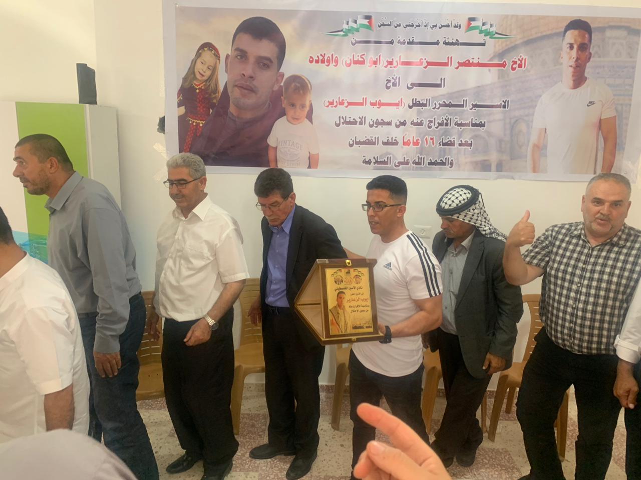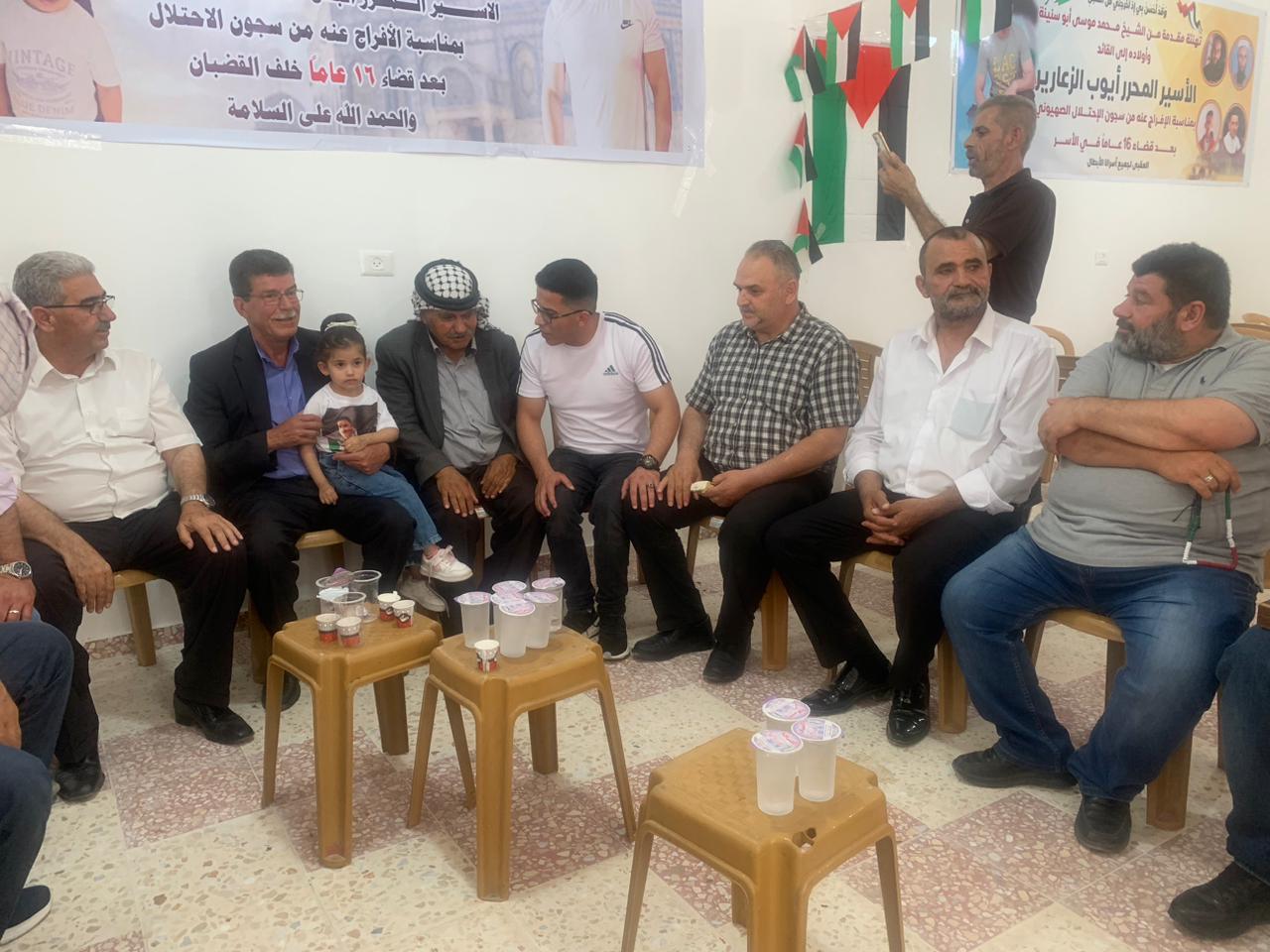 الخليل / وفاء وتقديرا وتكريما لمن أمضوا زهرة شبابهم خلف القضبان قدم وفد كبير من نادي الأسير الفلسطيني وعلى رأسه الأخ قدورة فارس رئيس نادي الأسير وكادر من الاسرى المحررين الذين امضوا سنوات طويله في سجون الاحتلال ووفد من هيئة التوجيه السياسي الوطني ممثلا بالاخ العميد إسماعيل غنام المفوض السياسي لمحافظة الخليل ولجنة التثقيف الوطني ممثلا بالاخوة الكادر موسى أبو صبحة وأبو حسن جبارين والعميد عزيز عيايدة ومنقذ أبو عطوان مدير هيئة شؤون الاسرى والمحررين مديرية شمال الخليل التهاني والتبريكات لثلاثة أسرى من أبناء محافظة الخليل والذين تحرروا من سجون الاحتلال وهم الأسير رامي حسان والذي امضى 19 عاما في سجون الاحتلال وايوب الزعارير وعامر أبو رموز والذين امضيا 16 عاما خلف القضبان ...