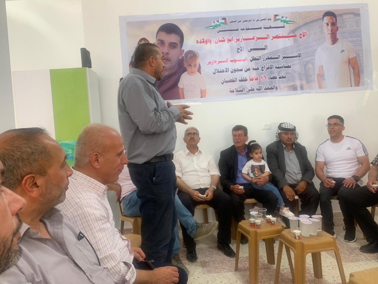 وفي كلمة الأخ العميد عزيز عيايدة موجها التحية لكل الاسرى المحررين ولكل ابطال الحركة الاسيرة في سجون الاحتلال مؤكدا ان الشعب الفلسطيني يرى في حرية الاسرى المقدمة الاولى للانعتاق من براثن الاحتلال، وان الاسرائيليين لن يحصلوا على الامن والاستقرار والسلام ما داموا يمارسون الجرائم بحق شعبنا ويعتقلون الآلاف من ابنائنا في السجون.