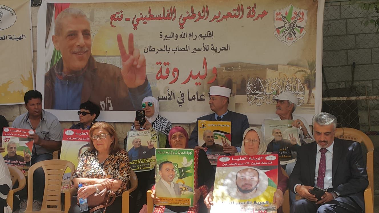 البيرة اليوم: من الوقفة الإسنادية، للأسرى في سجون الاحتلال ومنهم المرضى وعلى رأسهم القائد وليد دقة، والأسير عاصف الرفاعي وكذلك الأسرى المضربين عن الطعام، أمام الصليب الأحمر