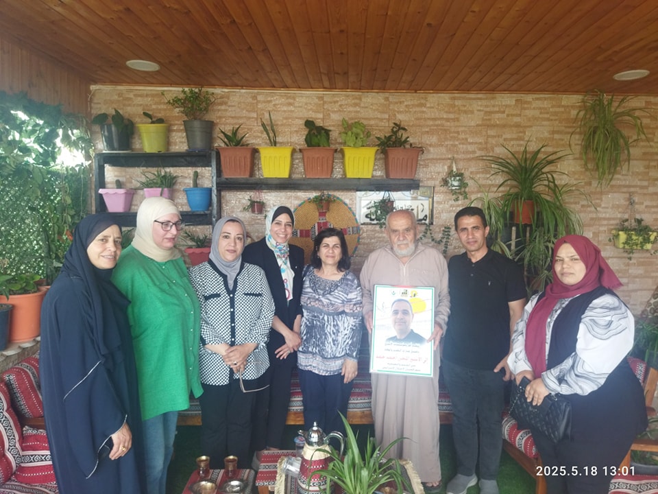 جانب من مشاركة نادي الأسير الفلسطيني في زيارة تهنئة للأسير المحرر المبعد خالد أبو حمد.