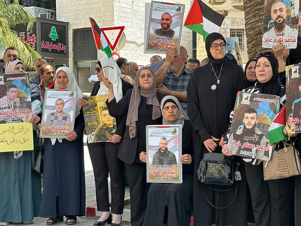 جانب من مشاركة نادي الأسير الفلسطيني في الفعالية الأسبوعية المساندة للأسرى ونصرة لغزة هاشم في رام الله