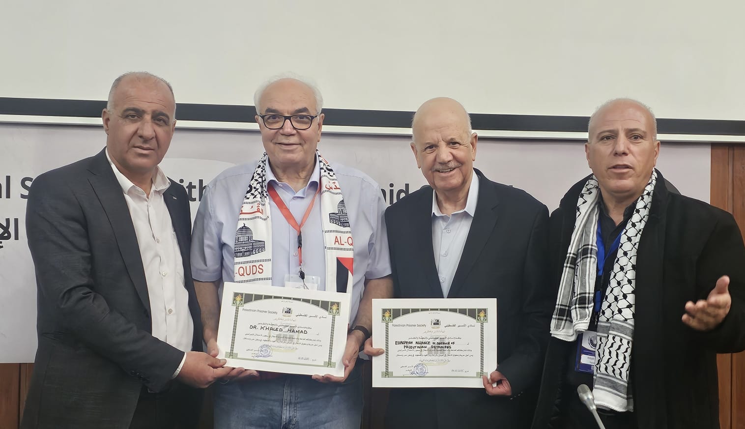 نادي الأسير الفلسطيني والهيئة العليا لمتابعة شؤون الأسرى يكرمان الدكتور خالد حمد والدكتور علي أبو هلال في ختام المؤتمر التاسع للتحالف الأوروبي ببروكسل
