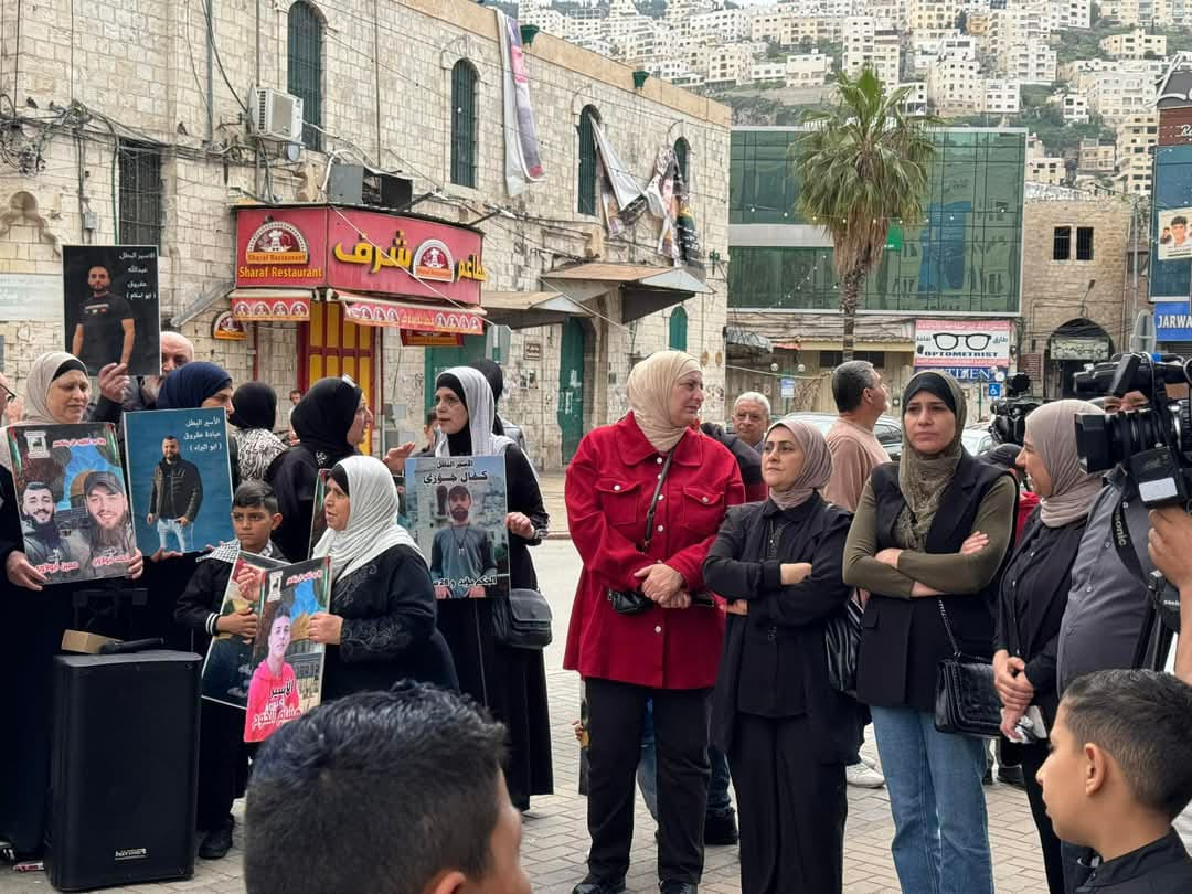 جانب من مشاركة نادي الأسير الفلسطيني في الفعالية الاسنادية للأسرى ونصرة لغزة هاشم في محافظة نابلس