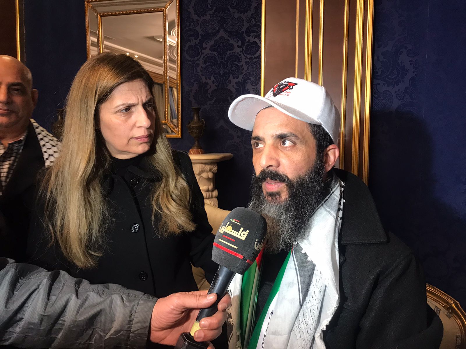 جانب من تقديم نادي الأسير الفلسطيني التهاني بالحرية للاسير المحرر وائل النتشة بعد اعتقال استمر 25عاما في سجون الاحتلال