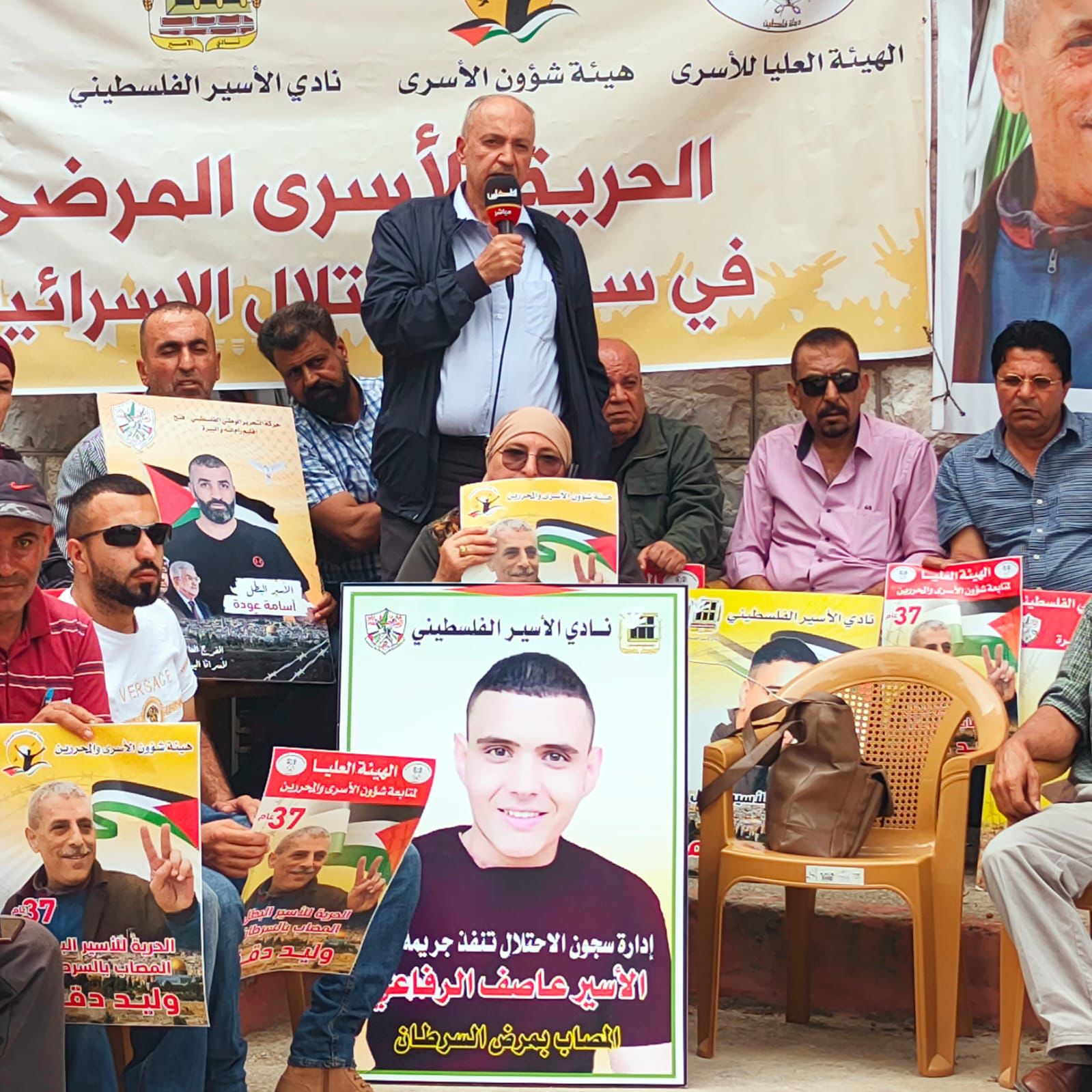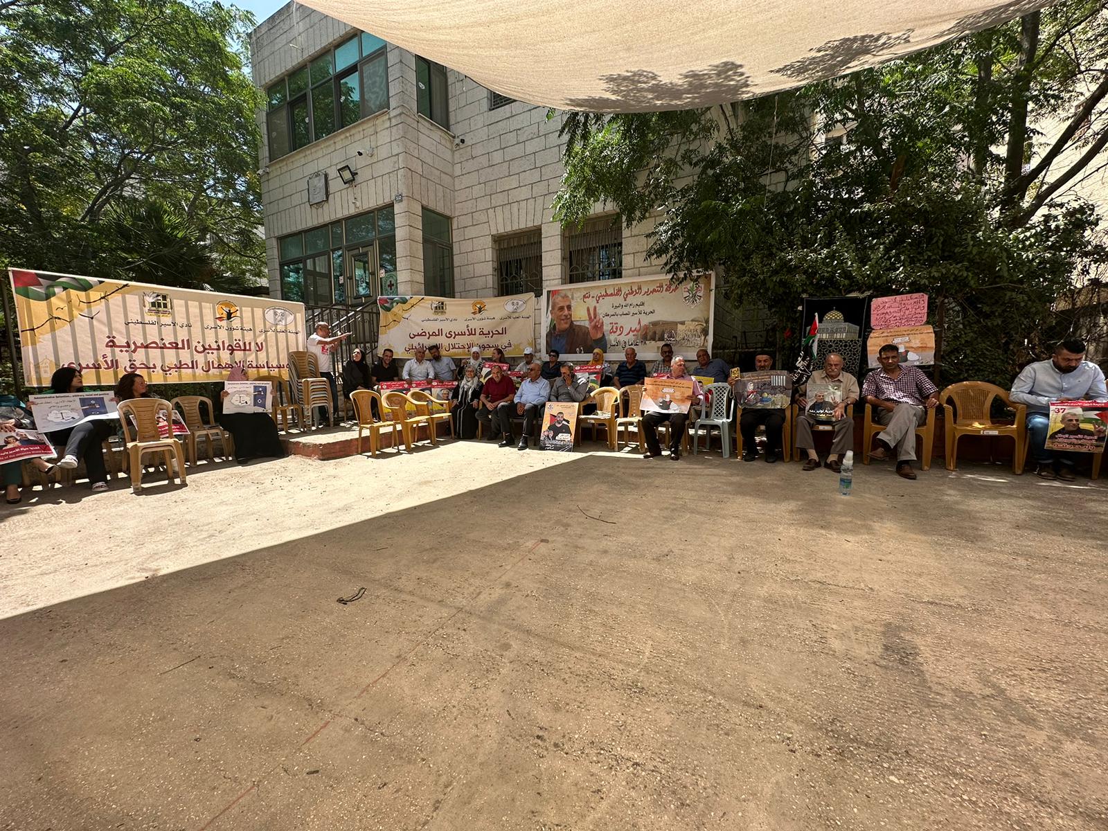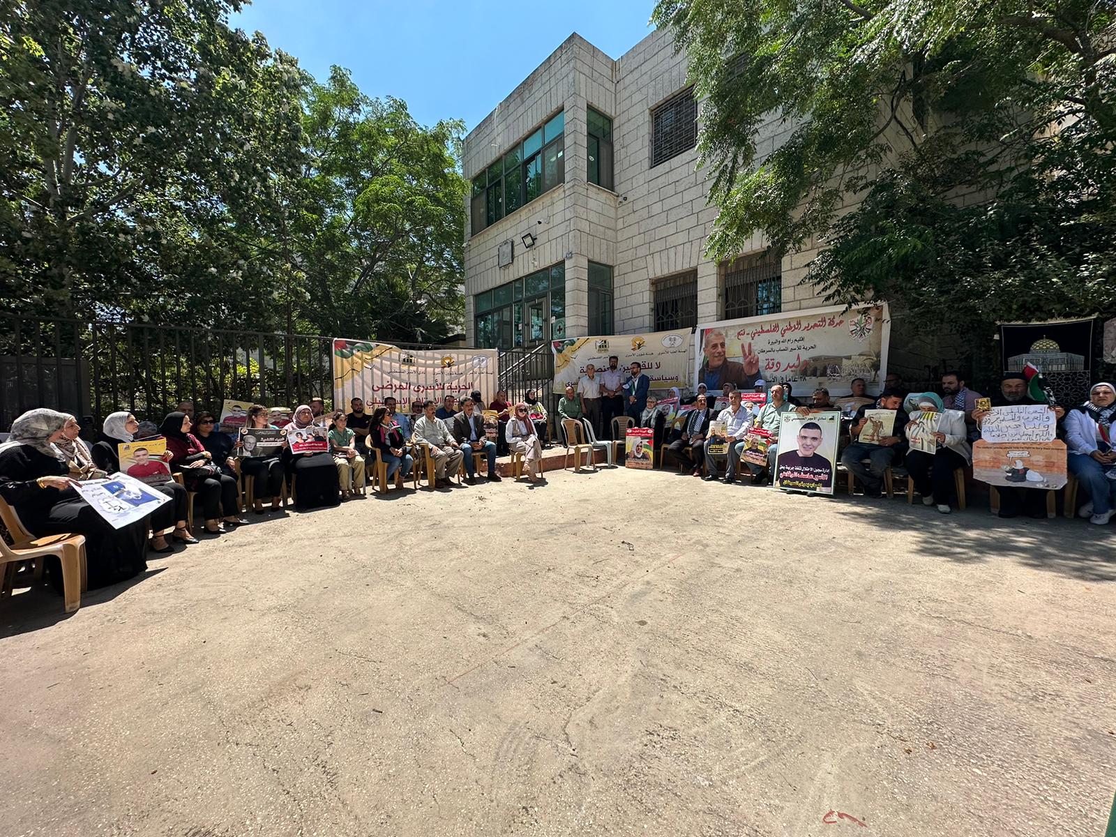 البيرة اليوم: من الوقفة التي نظمت اليوم إسنادًا للقائد الأسير وليد دقة والأسير عاصف الرفاعي وكافة الأسرى المرضى، والمعتقلين الإداريين.
