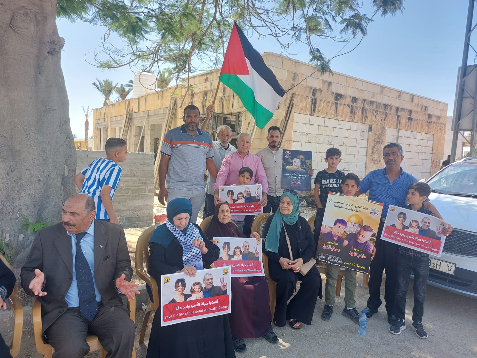 مؤسسات الأسرى تنظم وقفة دعم وإسناد للأسير وليد دقة وكافة الأسرى المرضى في سجون الاحتلال في بيت لحم بمشاركة زوجته وابنته.