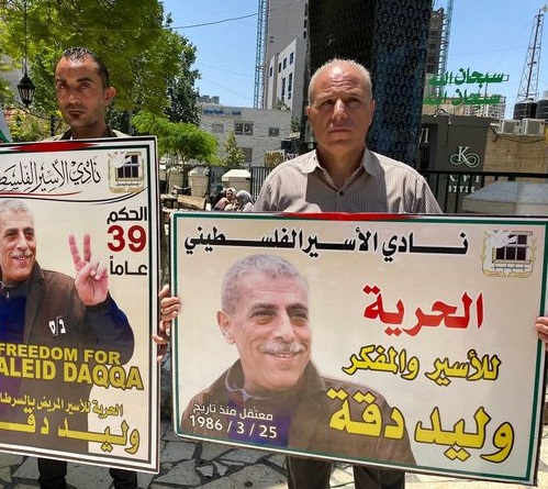 البيرة اليوم: من الوقفة التي نظمت اليوم إسنادًا للقائد الأسير وليد دقة والأسير عاصف الرفاعي وكافة الأسرى المرضى.