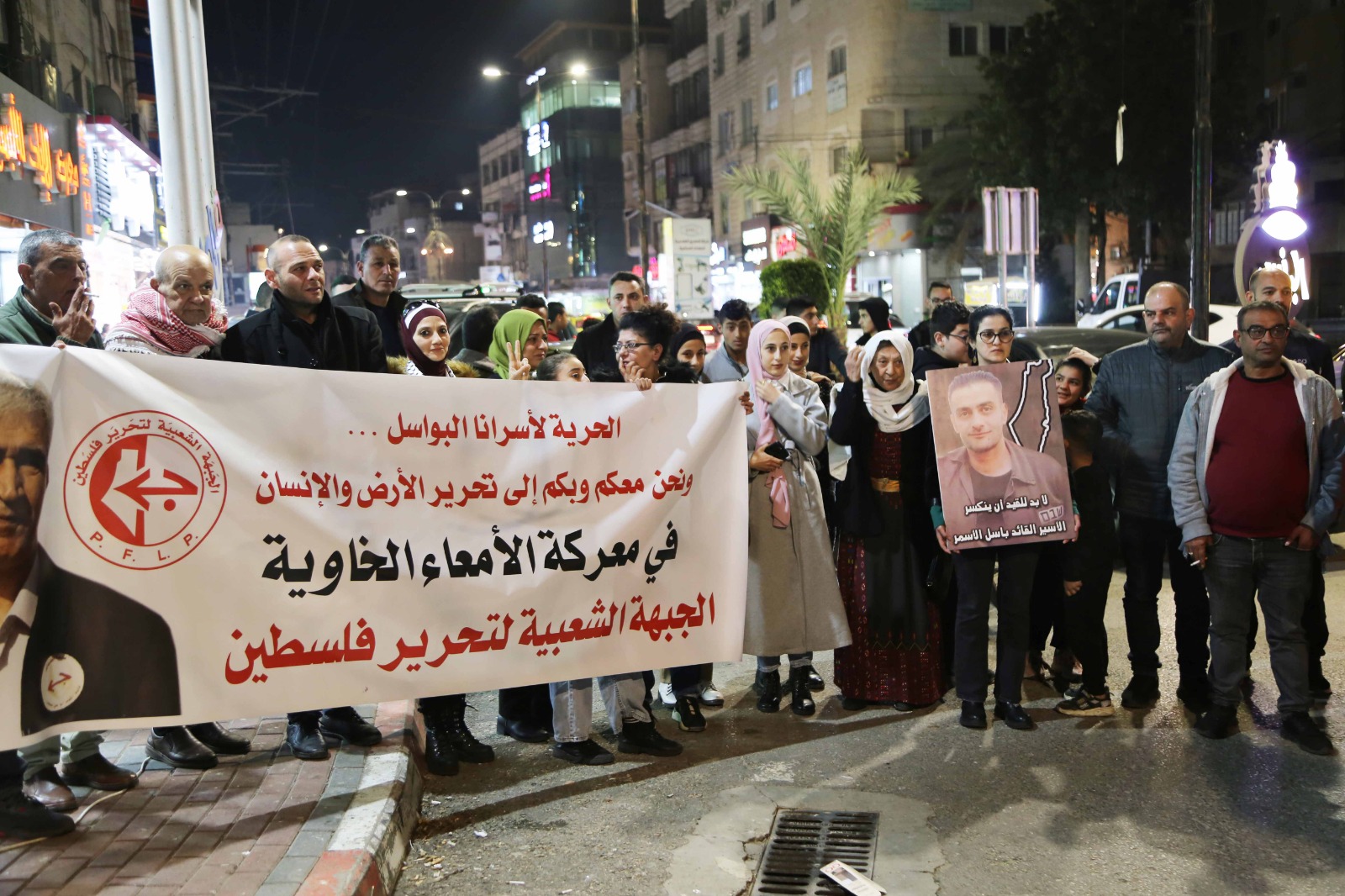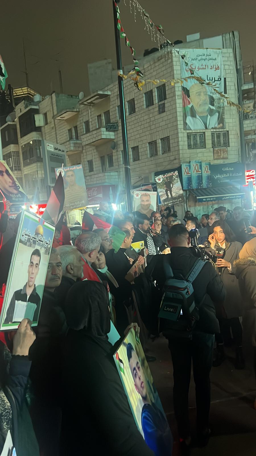 جانب من الوقفة الاسنادية للاسرى والاسيرات عل دوار مدينة اريحا مساء اليوم الثلاثاء تلبية لنداء الأسرى الثلاثاء الحمراء