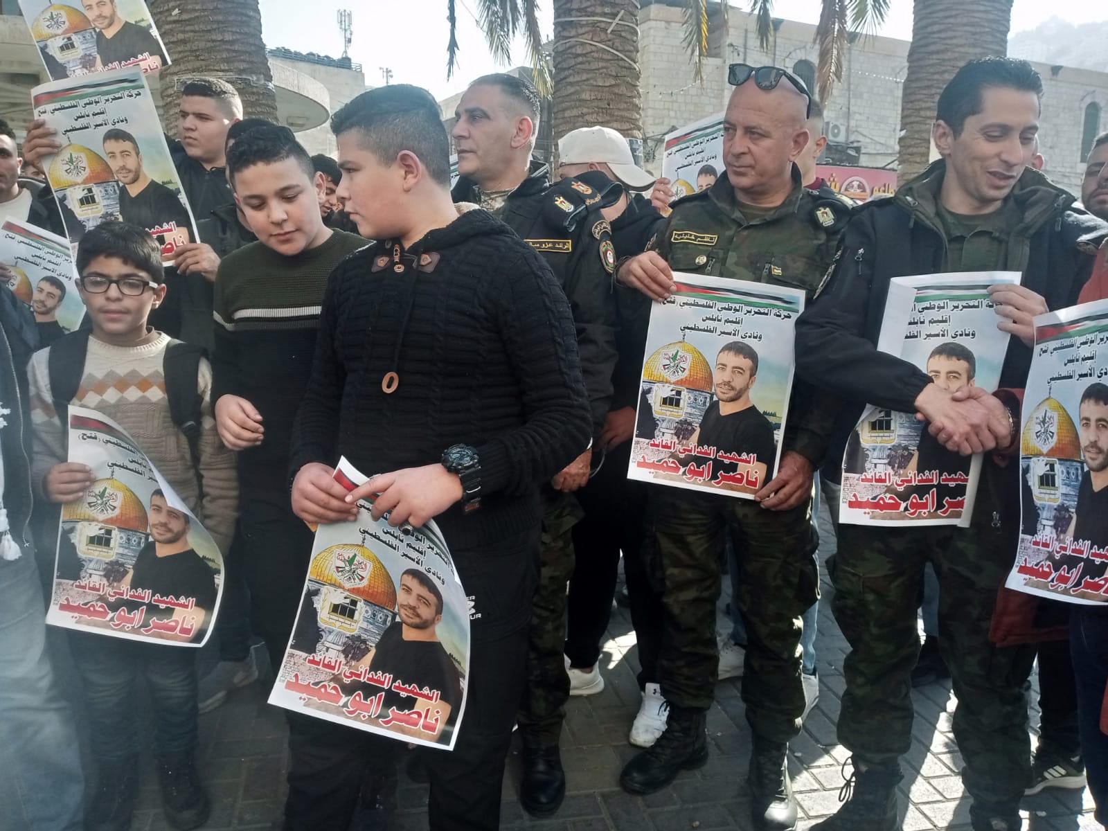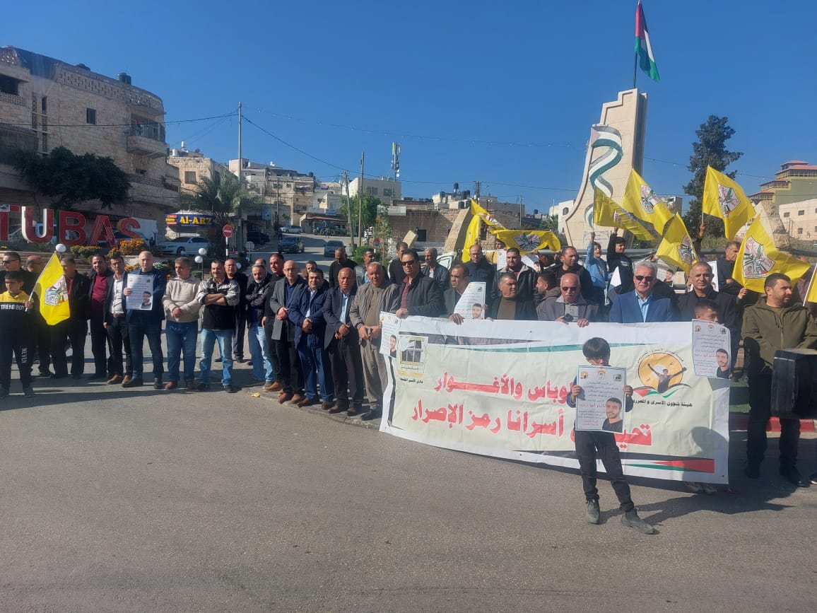 من الوقفه المندده والمستنكره باستشهاد القائد ناصر أبو حميد والتي دعا لها نادي الاسير الفلسطيني وهيئه شؤون الأسرى والمحررين ولجنه التنسيق الفصائلي في محافظه طوباس والاغوار الشماليه المزيد من التفاصيل