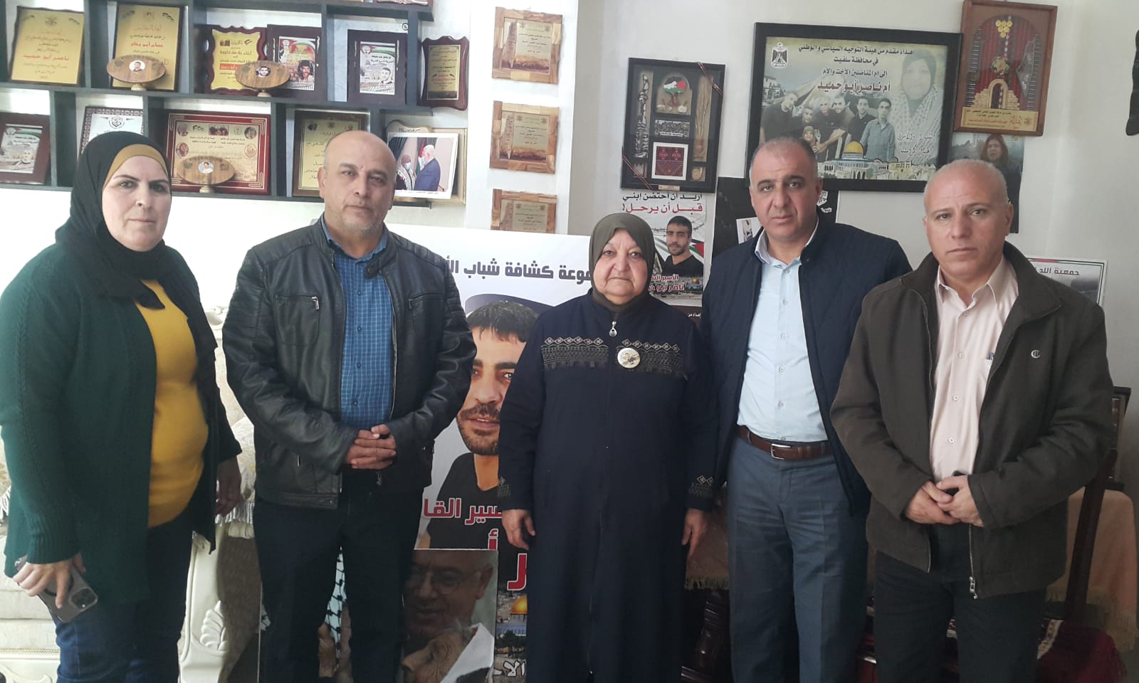 وفد من نادي الاسير وهيئة الاسرى والاسرى المحررين خلال تكريم عائلة الاسيرين محمد ومحمود القدومي من بلدة جيوس ، واللذين دخلا عامهم الواحد والعشرون في سجون الاحتلال .