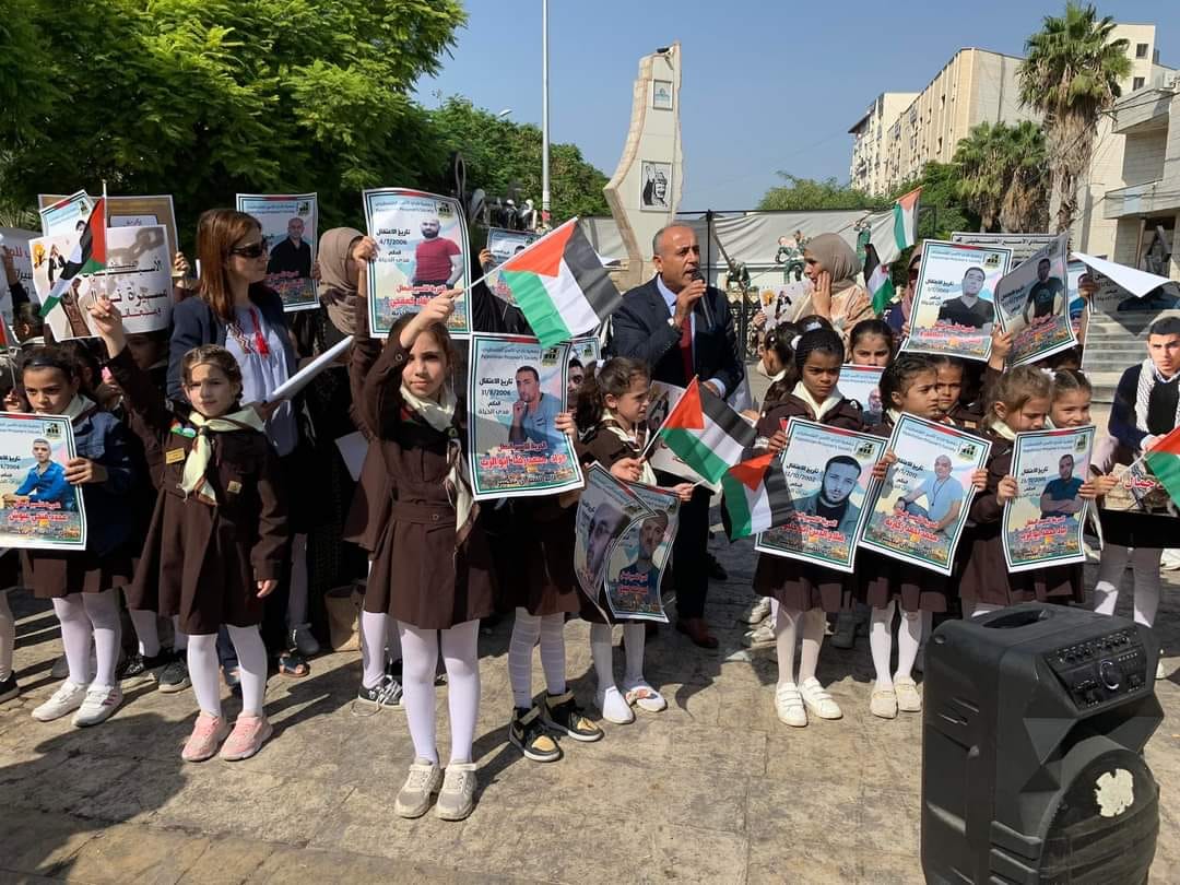 البيرة اليوم: من الاعتصام الأسبوعي لإسناد الأسير المريض بالسرطان ناصر أبو حميد والأسرى والأسيرات كافة في سجون الاحتلال اليوم من أمام مقر الصليب الأحمر.
