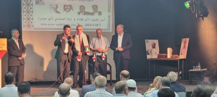 مشاركة نادي الأسير الفلسطيني ممثلة بالاخ قدورة فارس رئيس نادي الأسير الفلسطيني بحفل تكريم الاخوة امين مقبول والاخ اياد الصفدي ابو حيدر بمركز يافا الثقافي بمخيم بلاطة