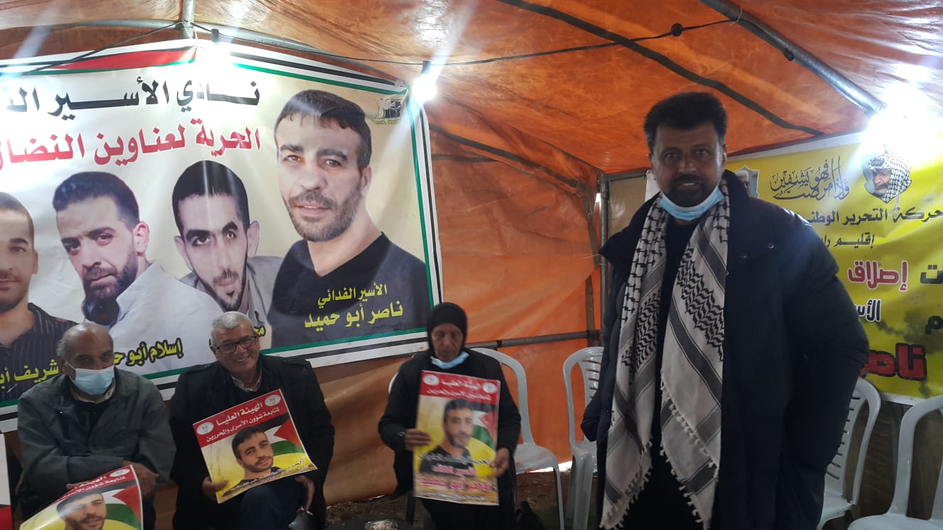 صور| من الوقفة التي دعت لها مؤسسات الأسرى والقوى الوطنية والإسلامية اليوم الثلاثاء، لمساندة الأسير ناصر أبو حميد
