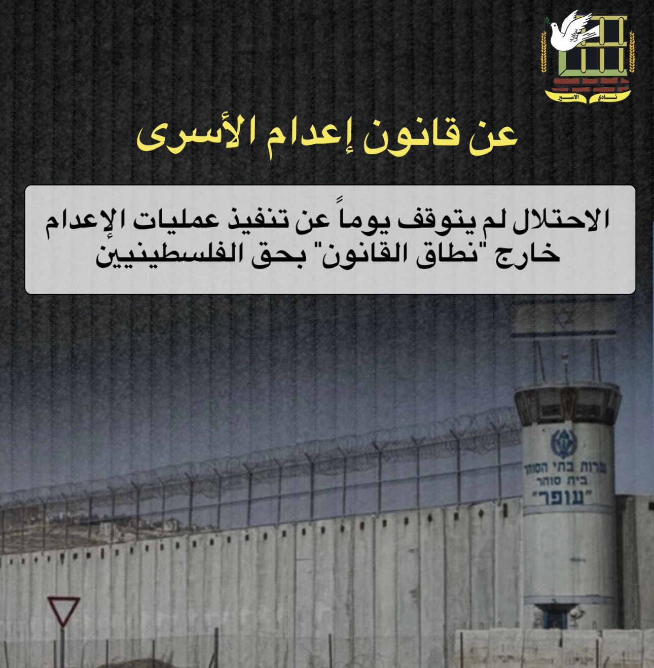🔴 تصريح صادر عن نادي الأسير الفلسطيني حول المساعي المستمرة والمتسارعة لإقرار الاحتلال الإسرائيلي قانون الإعدام بحق الأسرى