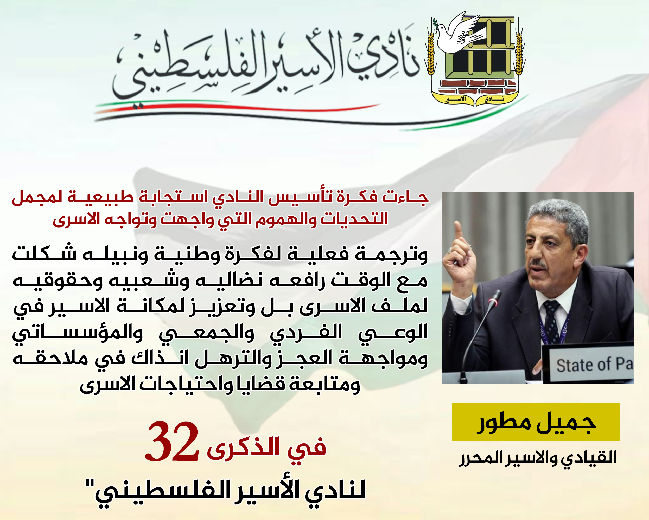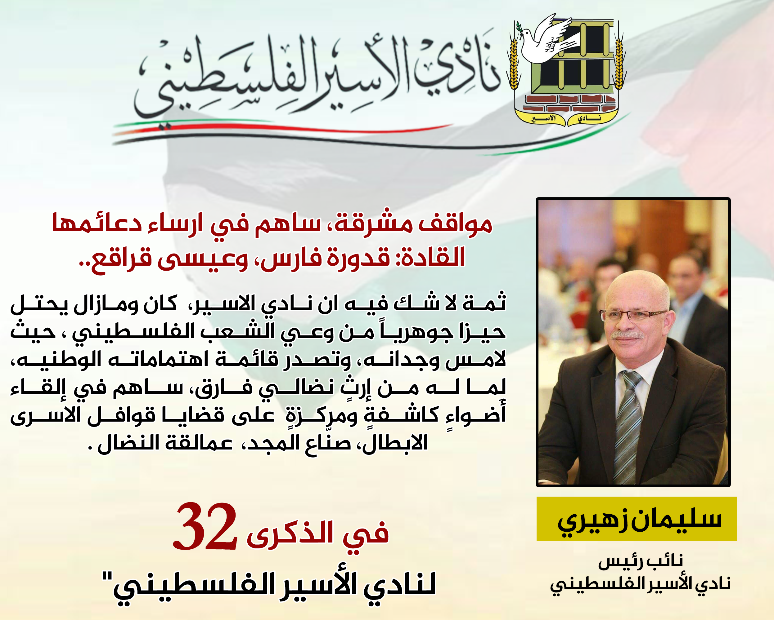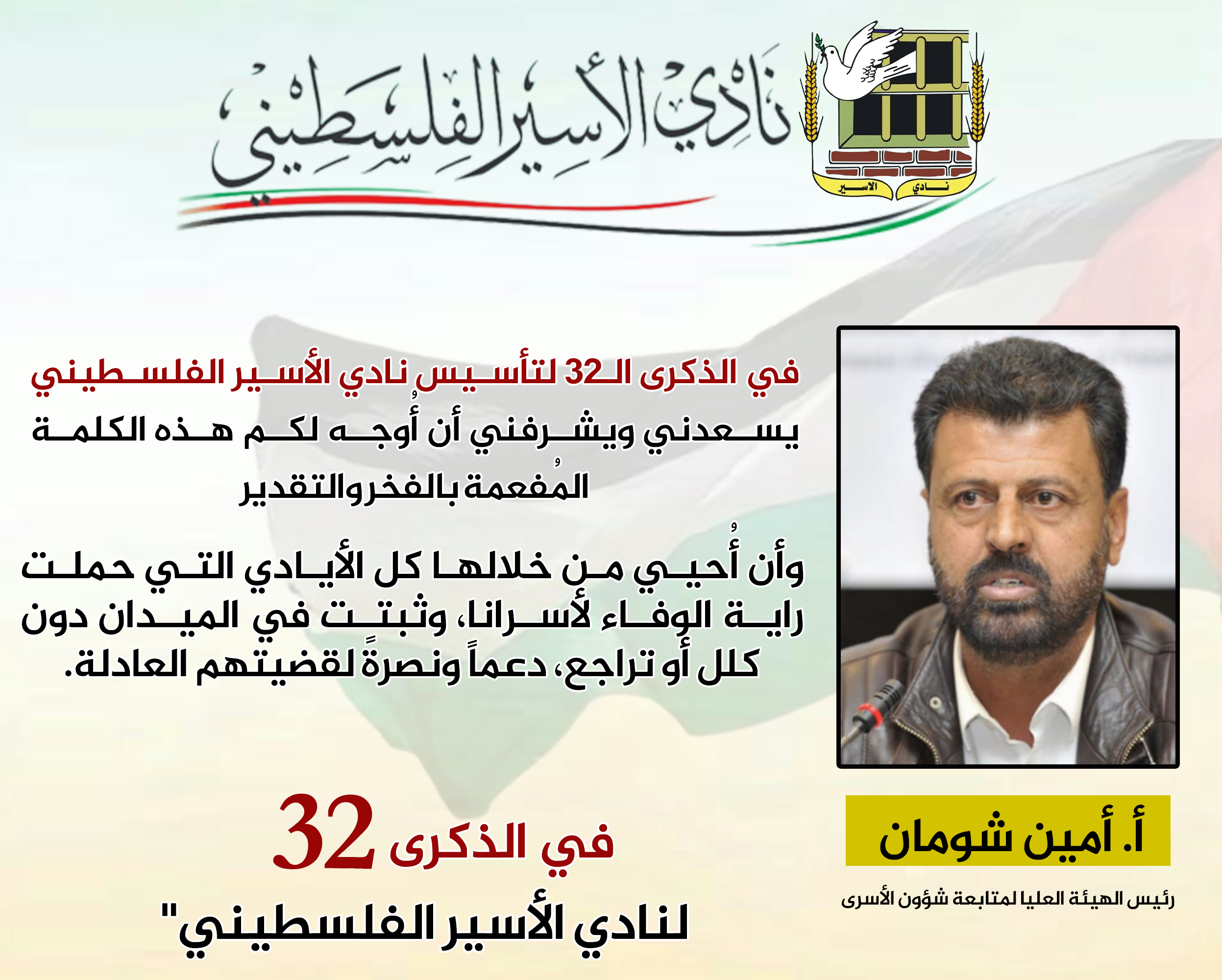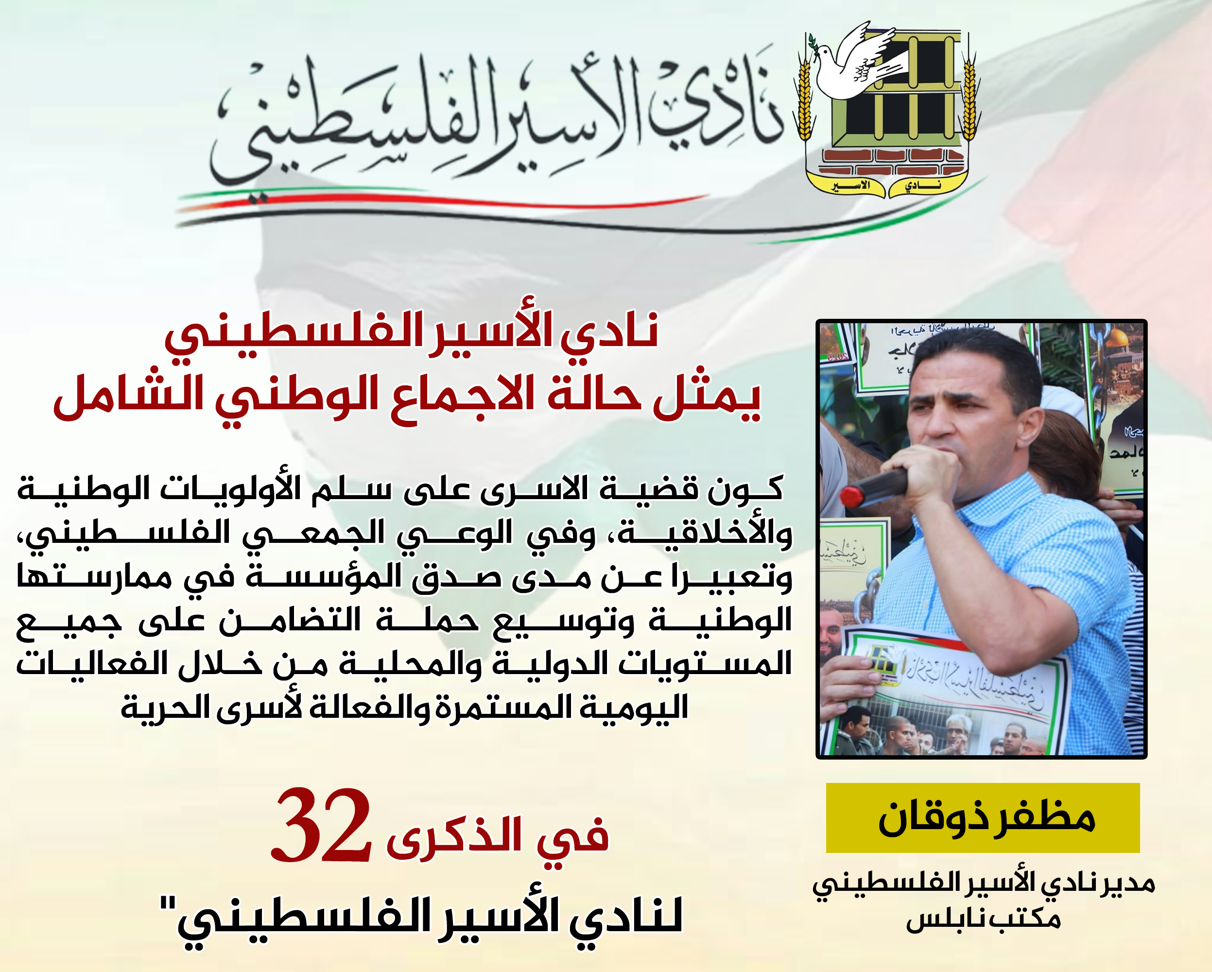 بمناسبة الذكرى الـ32 لتأسيس نادي الأسير الفلسطيني
