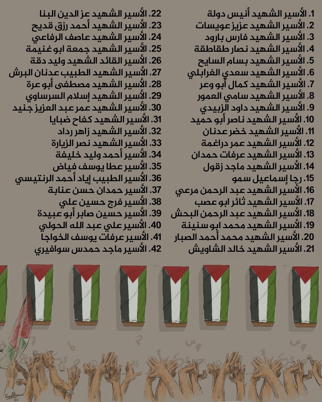 📌 كي لا ننسى مرفق أسماء الشهداء الأسرى المحتجزة جثامينهم