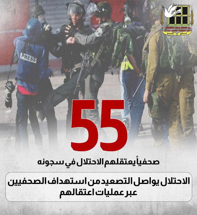 ▪ 55 صحفياً يعتقلهم الاحتلال في سجونه