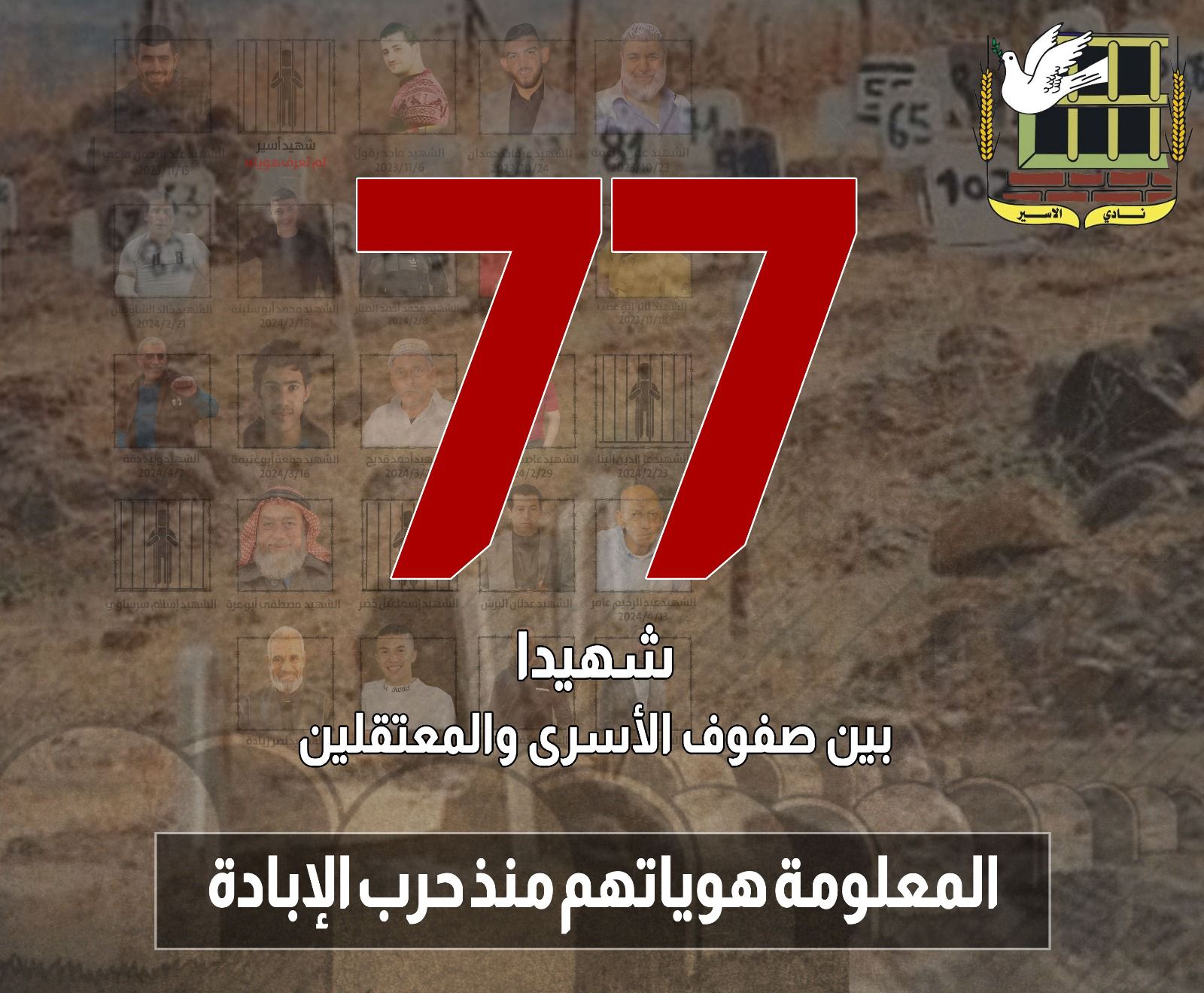 🔴 (77) شهيداً بين صفوف الأسرى والمعتقلين داخل سجون الاحتلال منذ بدء حرب الإبادة