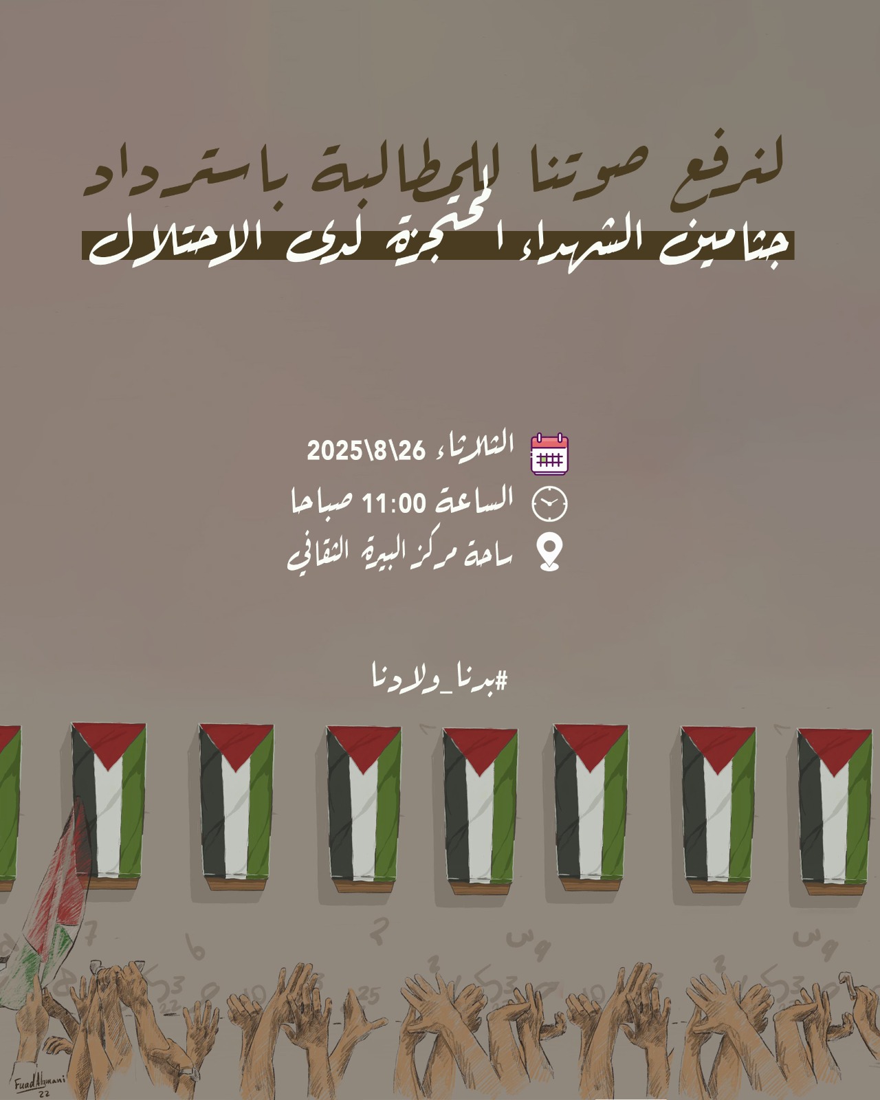•في اليوم الوطني لاسترداد جثامين الشهداء المحتجزة لدى سلطات الاحتلال الإسرائيلي الذي يوافق 27 من آب من كل عام.