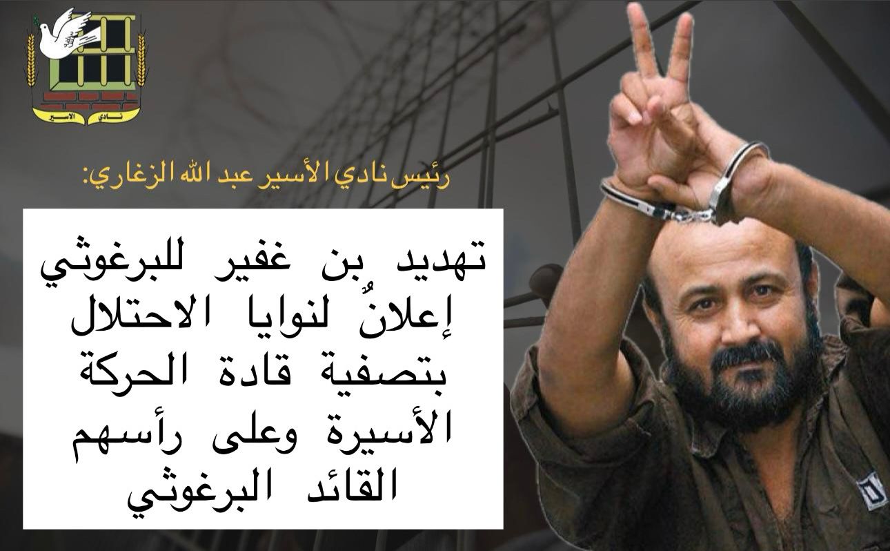 الزغاري: تهديد "بن غفير" للقائد البرغوثي إعلانٌ لنوايا الاحتلال بتصفيتة وقادة الحركة الأسيرة