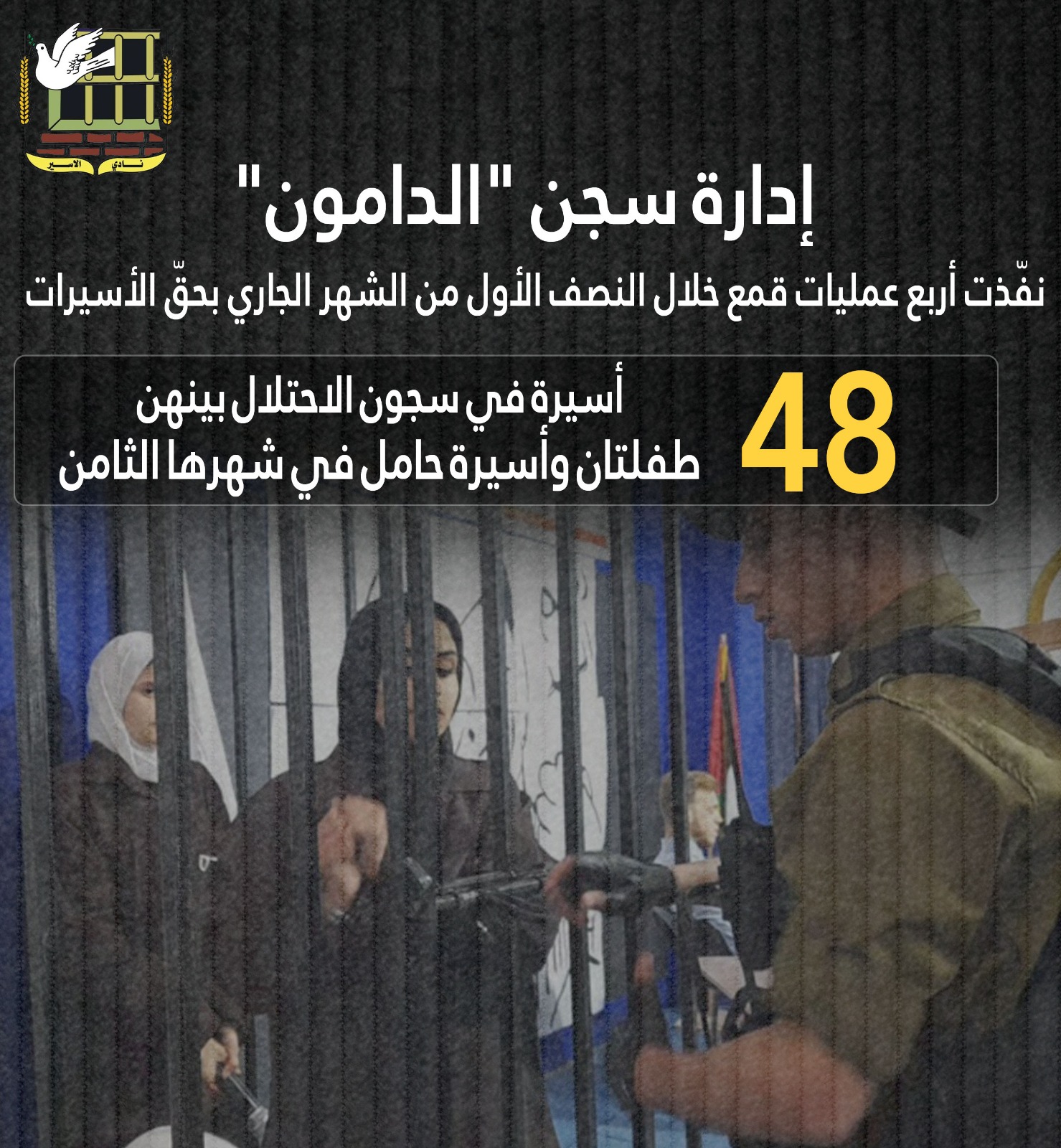 ⭕ إدارة سجن "الدامون" نفّذت أربع عمليات قمع خلال النصف الأول من الشهر الجاري بحقّ الأسيرات