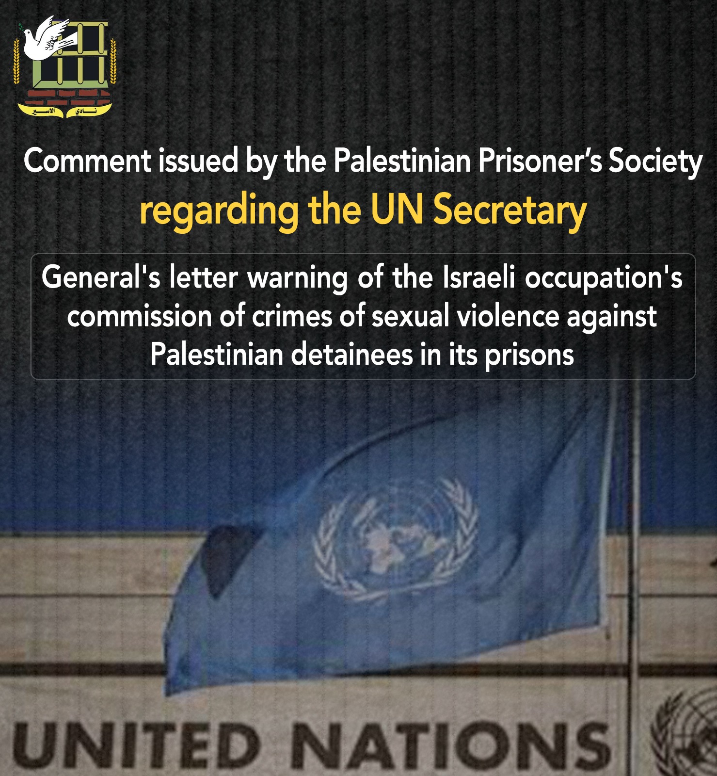 📌 تعقيب صادر عن نادي الأسير حول رسالة الأمين العام "لدولة" الاحتلال التي تضمنت تحذيرا حول ممارستها جرائم "عنف جنسي" بحق المعتقلين في سجونها ومراكز احتجاز المزيد من التفاصيل