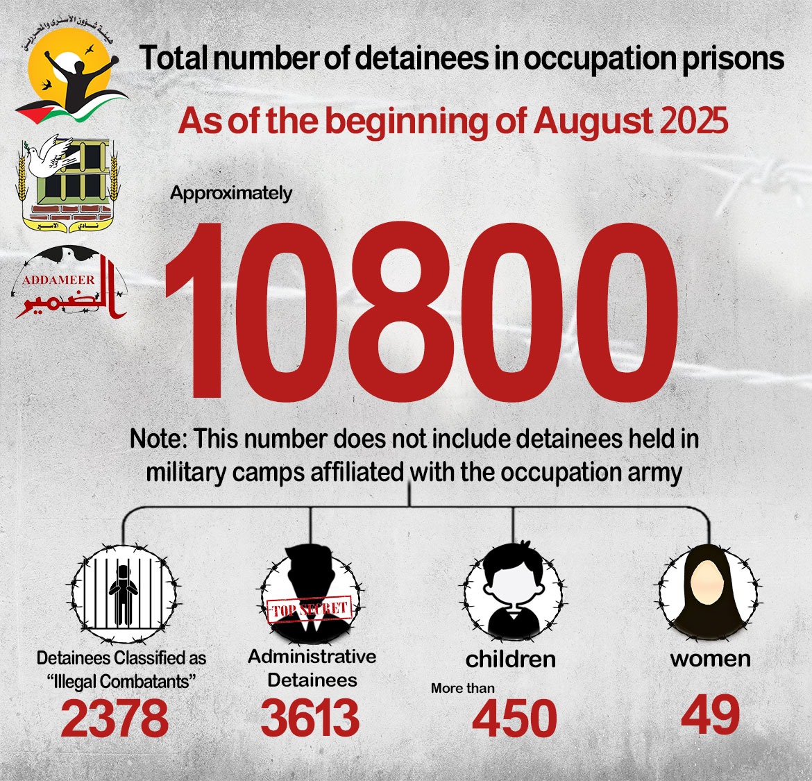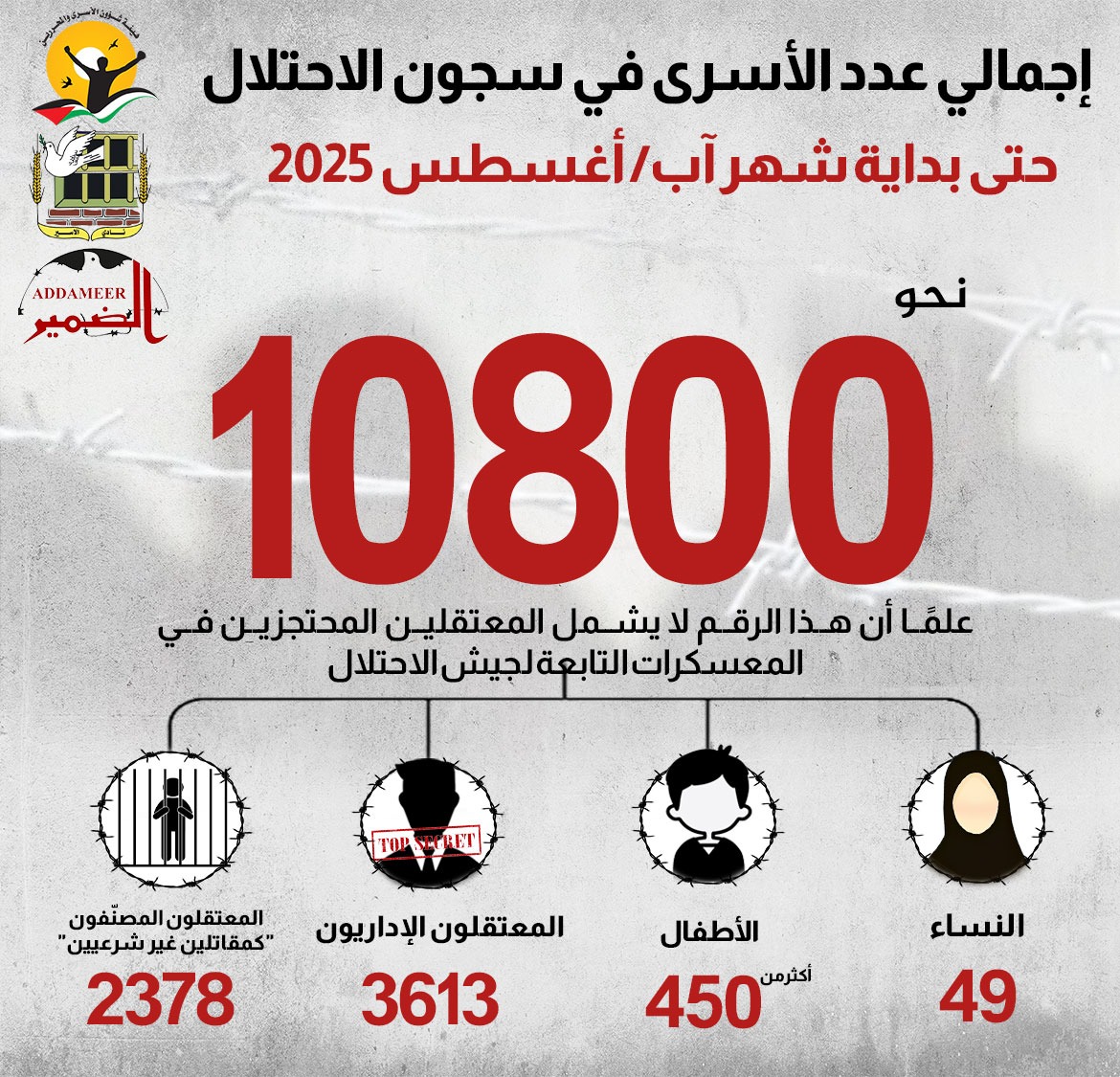 🔴 تحديث عن أعداد الأسرى والمعتقلين في معتقلات الاحتلال الإسرائيلي حتى بداية شهر آب/ أغسطس 2025