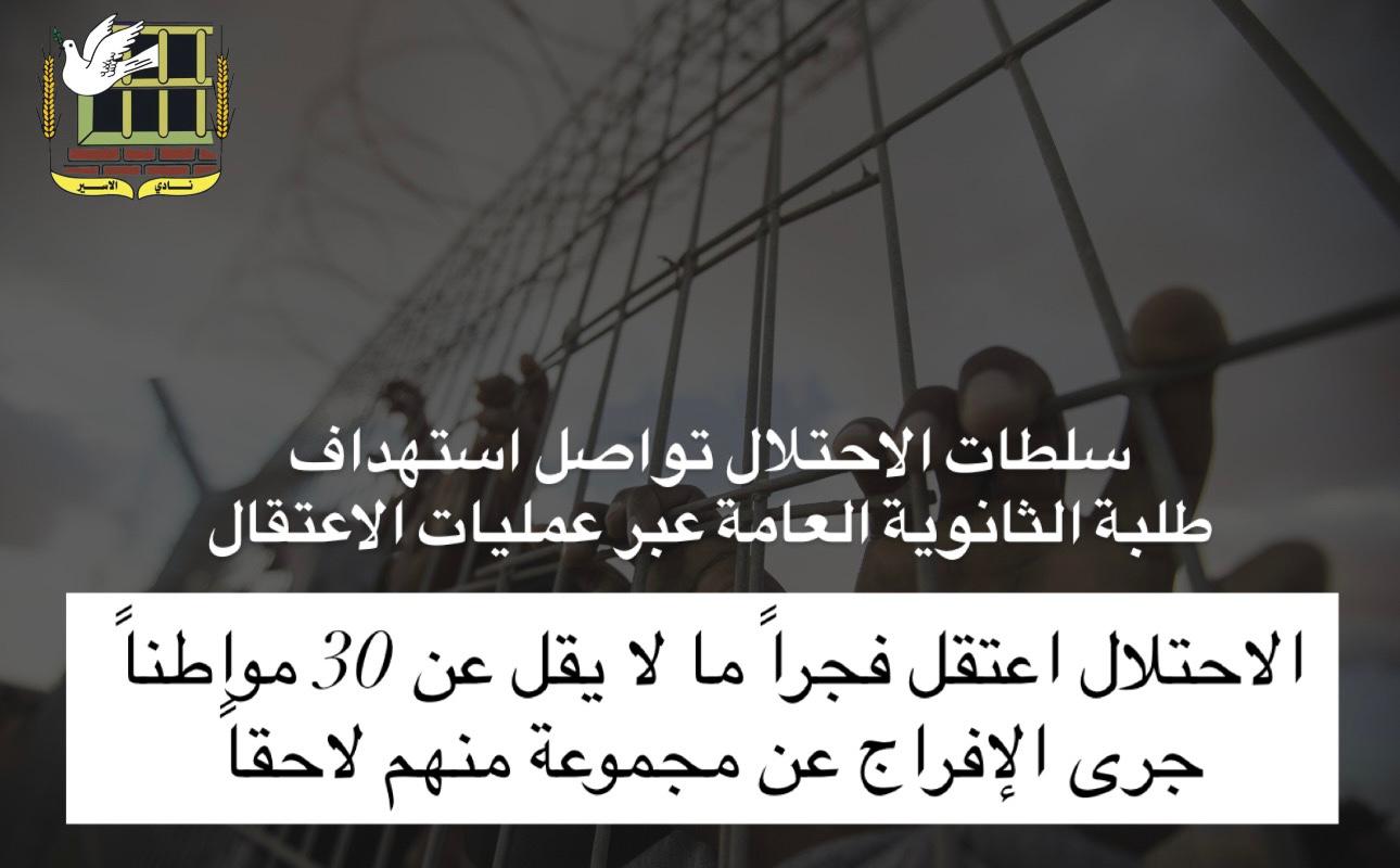 🔴 سلطات الاحتلال تواصل استهداف طلبة الثانوية العامة عبر عمليات الاعتقال