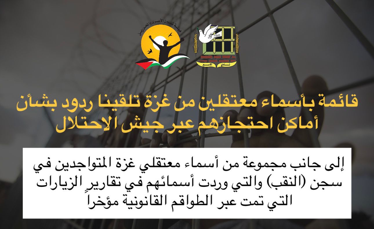 صادر عن هيئة شؤون الأسرى والمحررين ونادي الأسير الفلسطيني