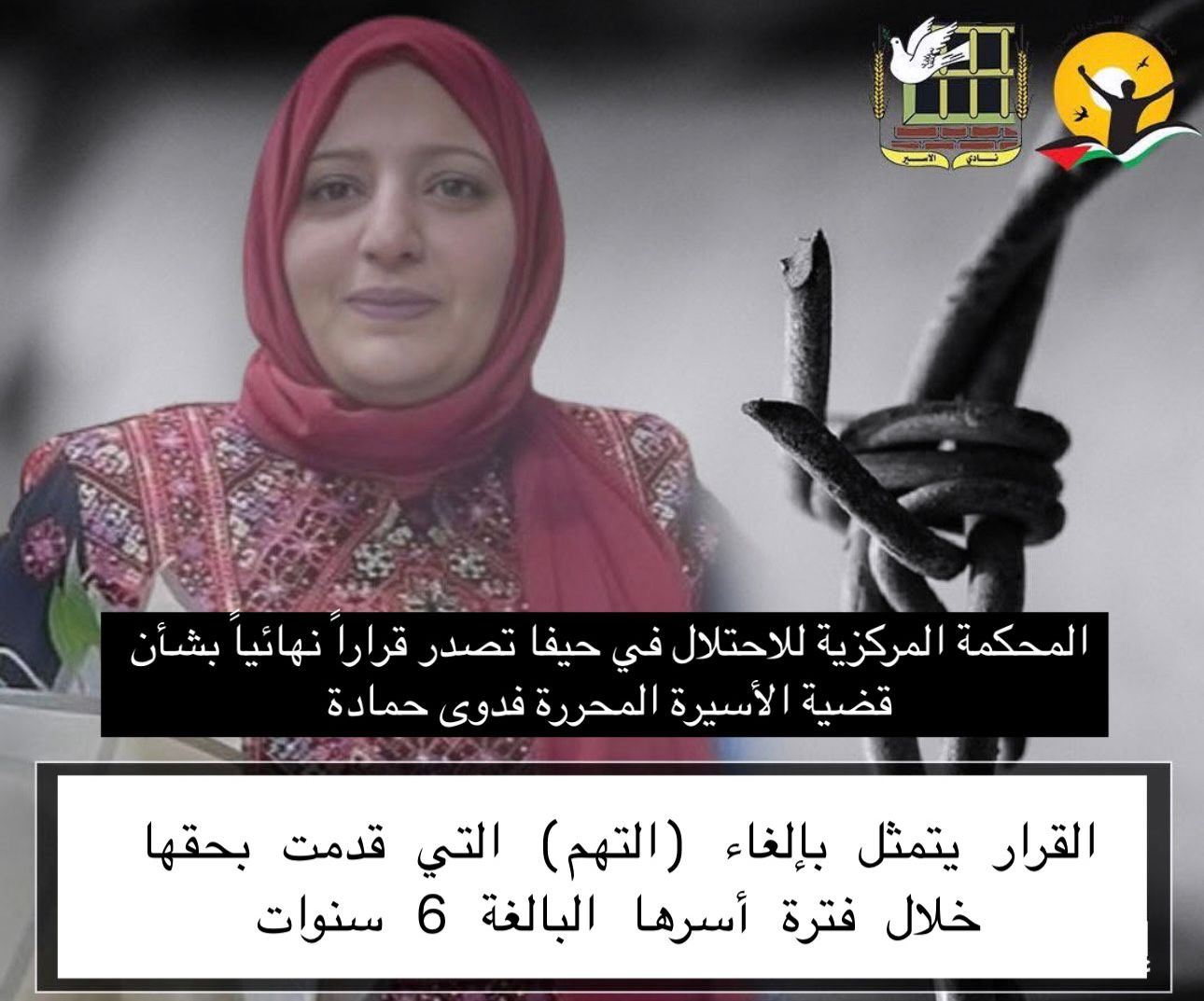 ● المحكمة المركزية للاحتلال في حيفا تصدر قراراً نهائيا بشأن قضية الأسيرة المحررة فدوى حمادة