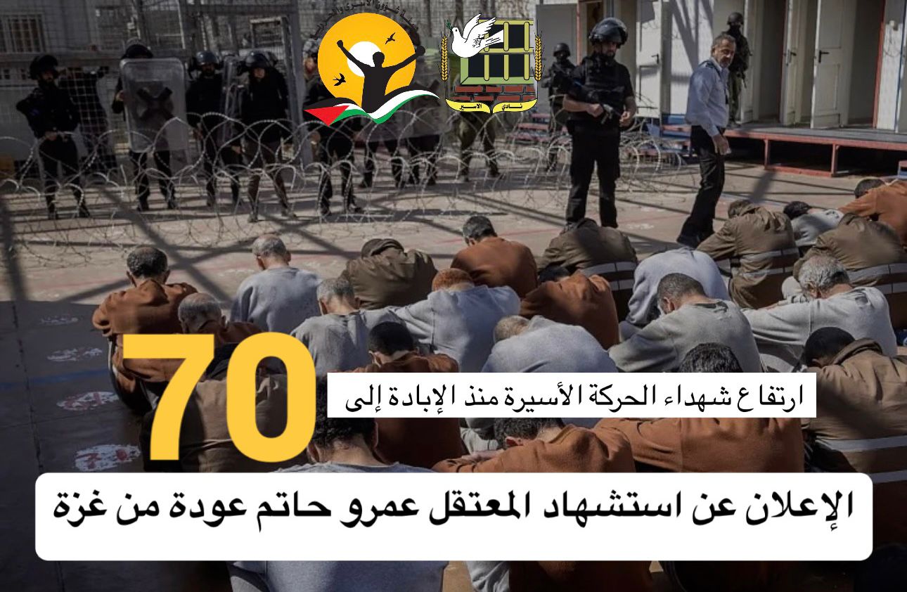 ● ارتفاع عدد شهداء الحركة الأسيرة منذ الإبادة إلى 70