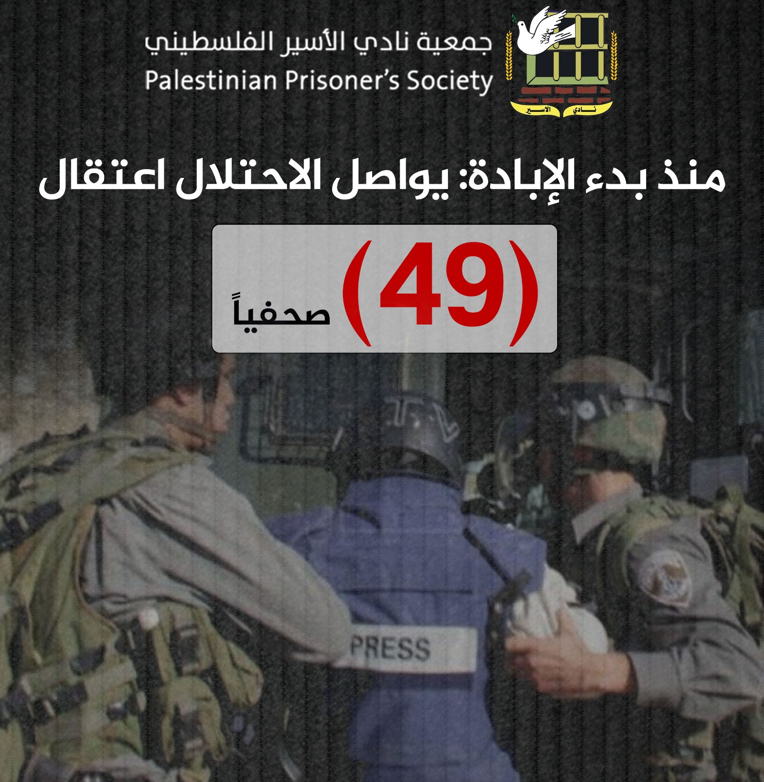 ● منذ بدء الإبادة: يواصل الاحتلال اعتقال (49) صحفياً