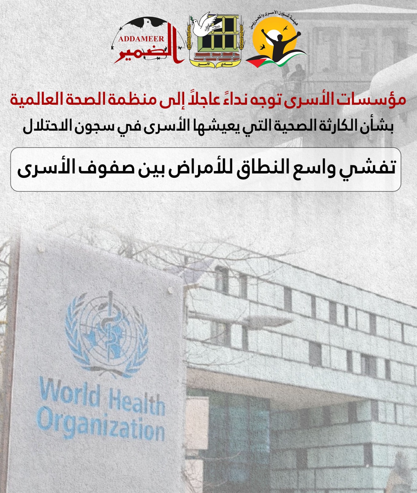● مؤسسات الأسرى توجه نداءً عاجلاً إلى منظمة الصحة العالمية بشأن الكارثة الصحية التي يعيشها الأسرى في سجون الاحتلال