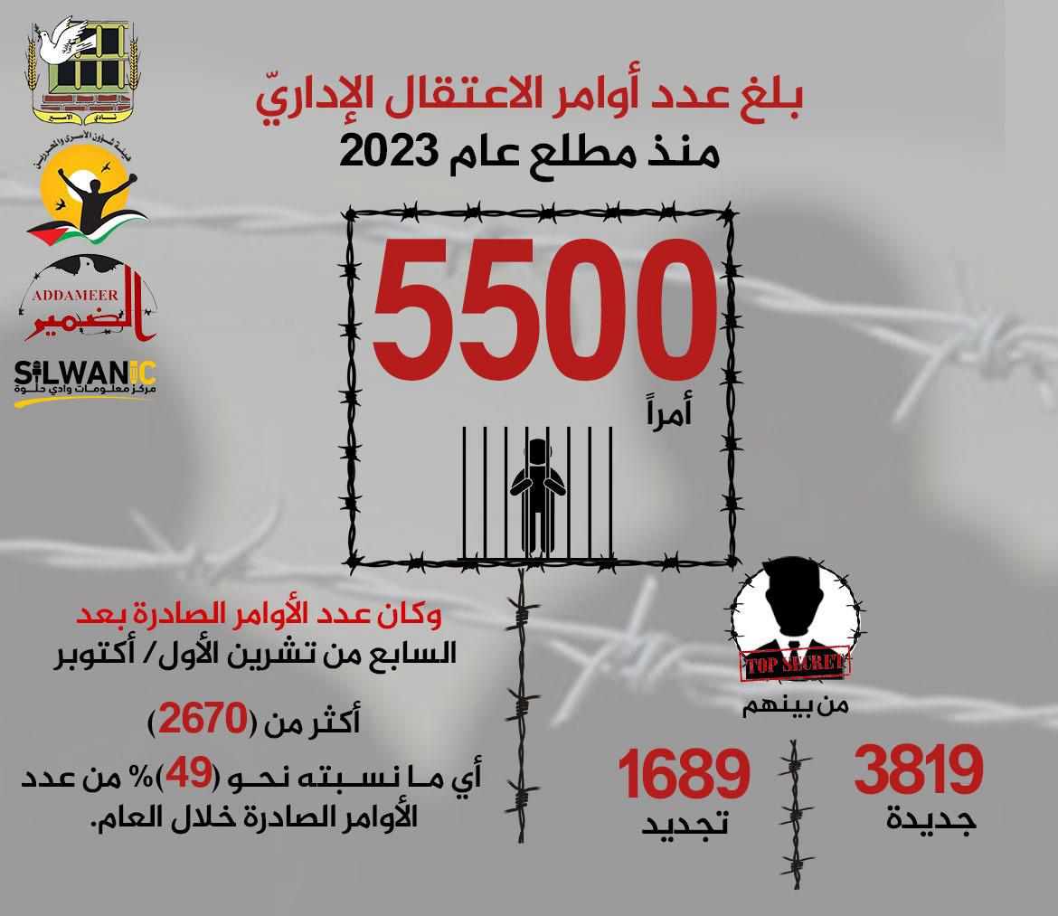 رام الله - أصدرت مؤسسات الأسرى (هيئة شؤون الأسرى والمحررين، ونادي الأسير الفلسطيني، ومؤسسة الضمير لرعاية الأسير وحقوق الإنسان، ومركز وادي حلوة – القدس) تقريرًا خاصّا يجمل أبرز القضايا والمعطيات الخاصّة بواقع قضية الأسرى والمعتقلين في سجون الاحتلال الإسرائيليّ للعام 2023، إضافة إلى قراءة موسعة حول المعطيات والسياسات والجرائم المروعة التي نفّذها الاحتلال الإسرائيليّ خلال حملات الاعتقال في الضّفة بشكل أساس، وتصاعد هذه الحملات والجرائم بعد تاريخ السابع من أكتوبر، وذلك في ضوء العدوان الشامل الذي يشنّه الاحتلال الإسرائيلي على شعبنا، والإبادة الجماعية المتواصلة في غزة.