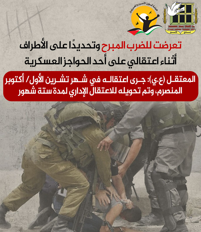 🔴 المعتقل (ع.ي): جرى اعتقاله في شهر تشرين الأول/ أكتوبر المنصرم، وتم تحويله للاعتقال الإداري لمدة ستة شهور