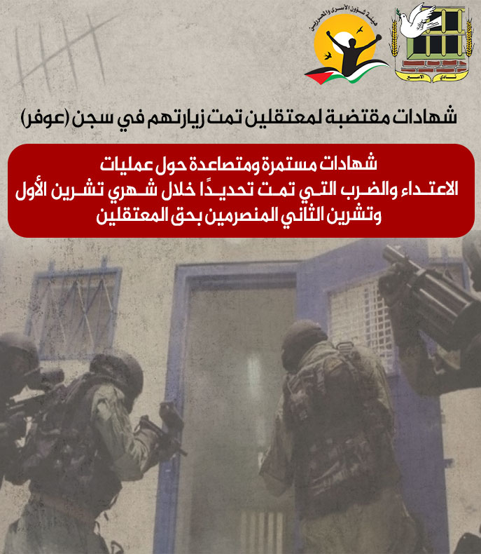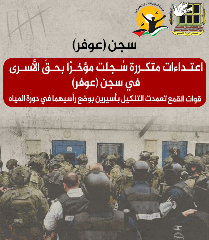 استنادًا لمجموعة من شهادات الأسرى في سجن (عوفر)، فإن عدة اعتداءات سُجلت بحقّ الأسرى على يد قوات القمع مؤخرًا، حيث أشار أحد الأسرى، إلى أن أسيرين تعرضا لعملية تنكيل وإذلال غير مسبوقة، بوضع رأسيهما داخل دورة المياه بعد ادعاء السّجانين أن مواجهة جرت بينهم وبين الأسيرين.