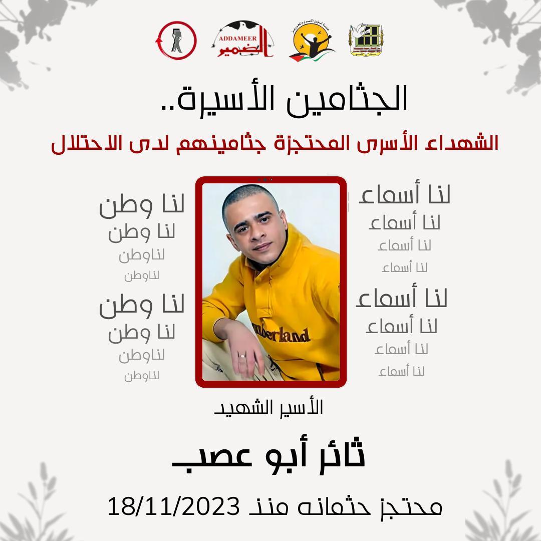 17. الأسير الشهيد ثائر ابو عصب، محتجز جثمانه منذ تاريخ 18/11/2023.