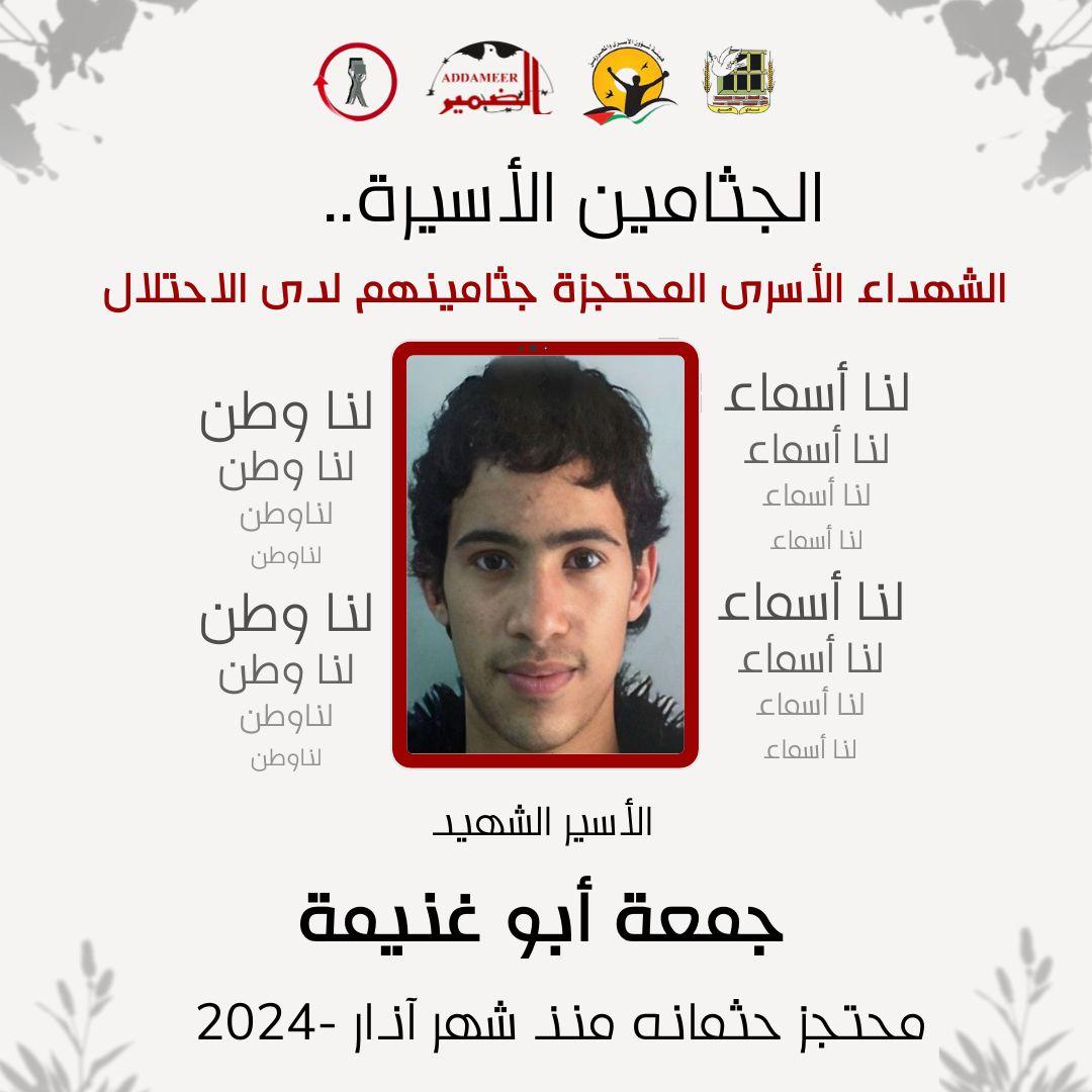 25. الأسير الشهيد جمعة ابو غنيمة، محتجز جثمانه منذ شهر آذار 2024، أعلن عن استشهاده في تاريخ 16/3/2024.
