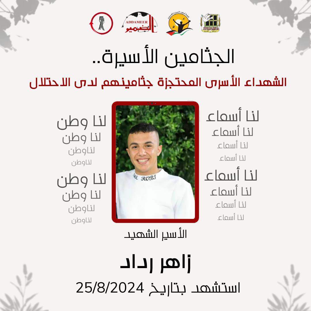32. الأسير الشهيد زاهر رداد، محتجز جثمانه منذ تاريخ 25/8/2024.